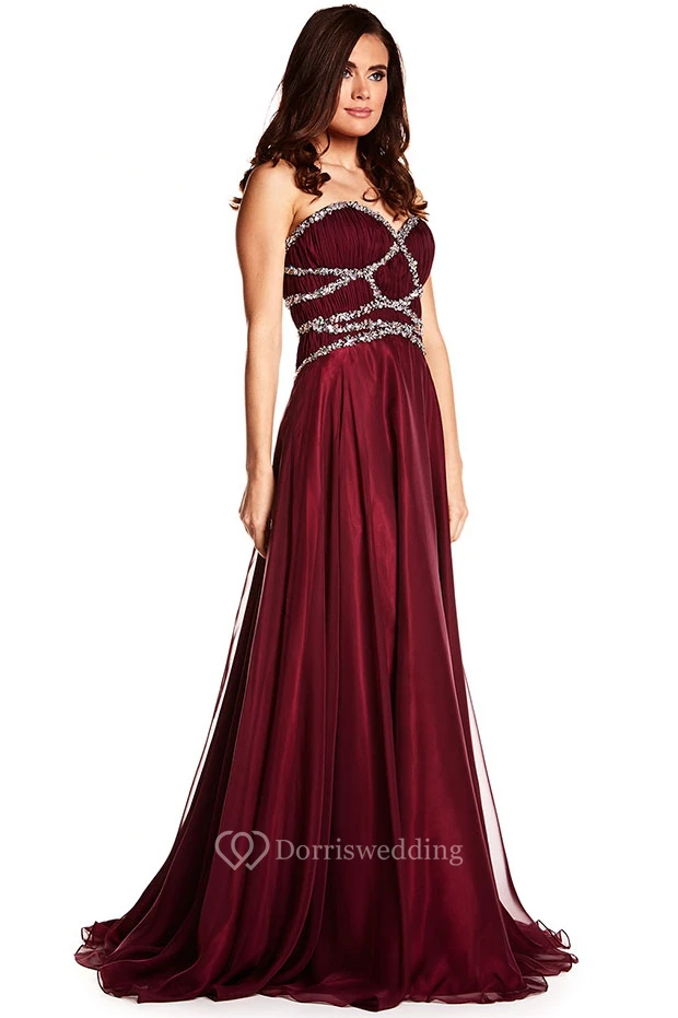 A-Line Sleeveless Sweetheart Floor-Length Beaded Chiffon Prom Dress With Straps And Pleats