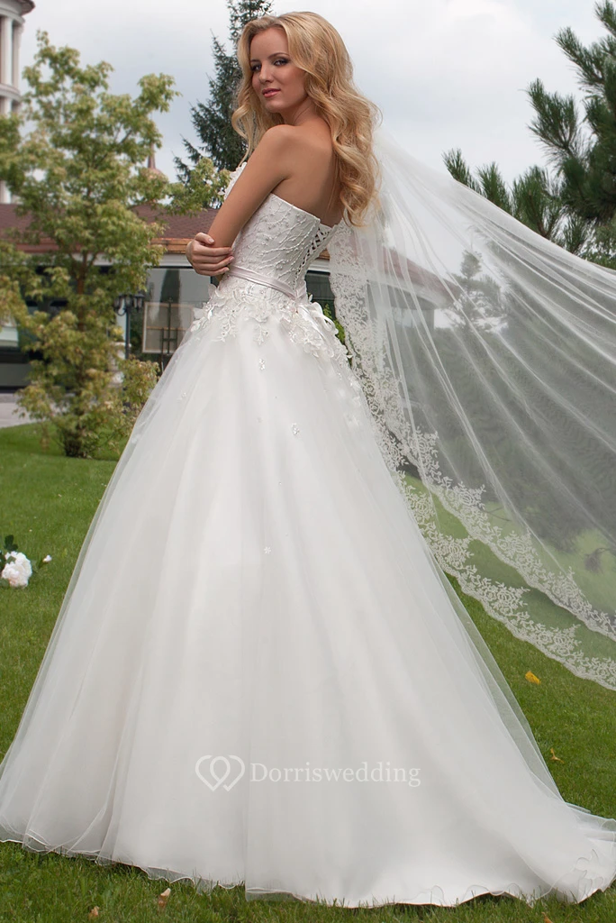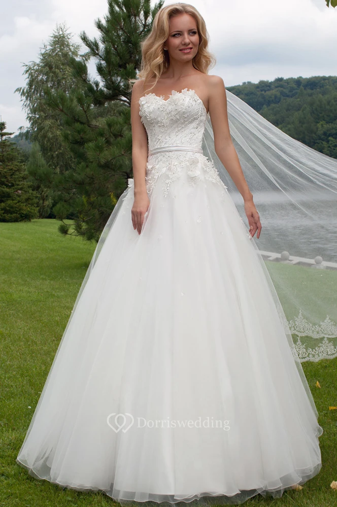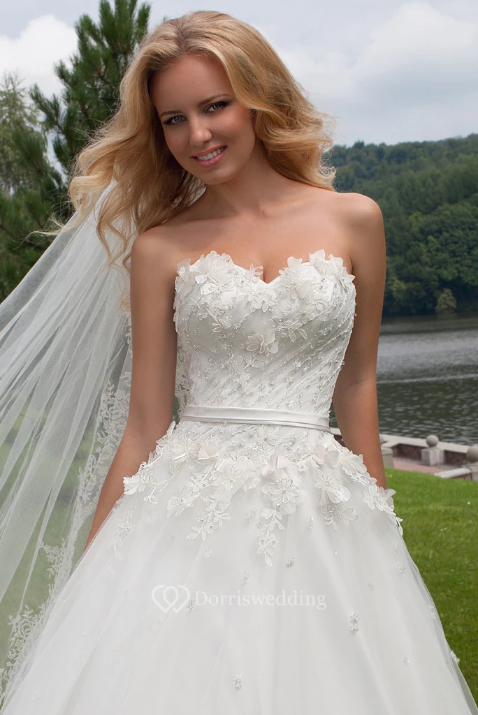A-Line Sleeveless Sweetheart Floral Tulle Wedding Dress