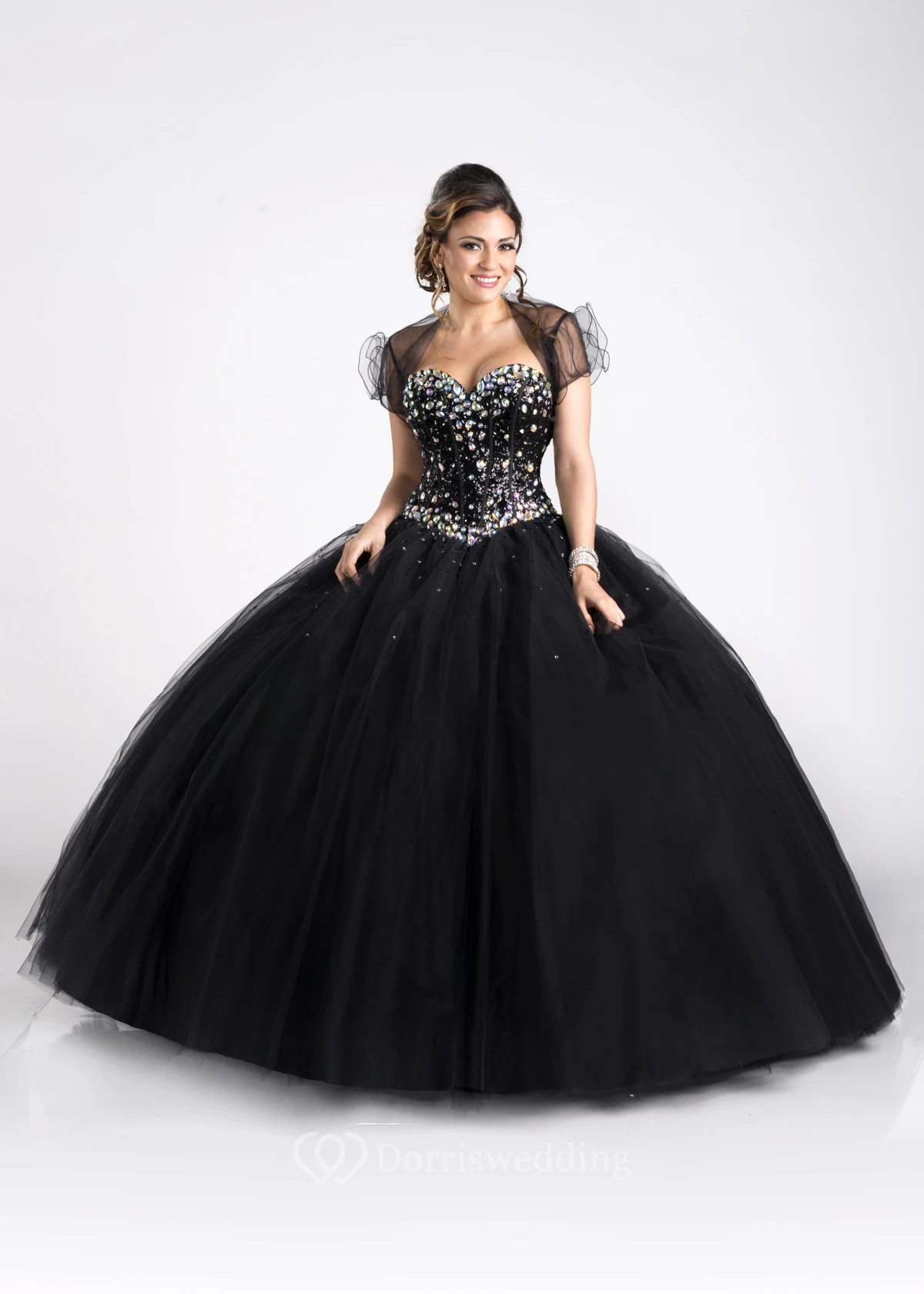 A-Line Sleeveless Tulle Ball Gown With Crystal Bodice And Removable Cap
