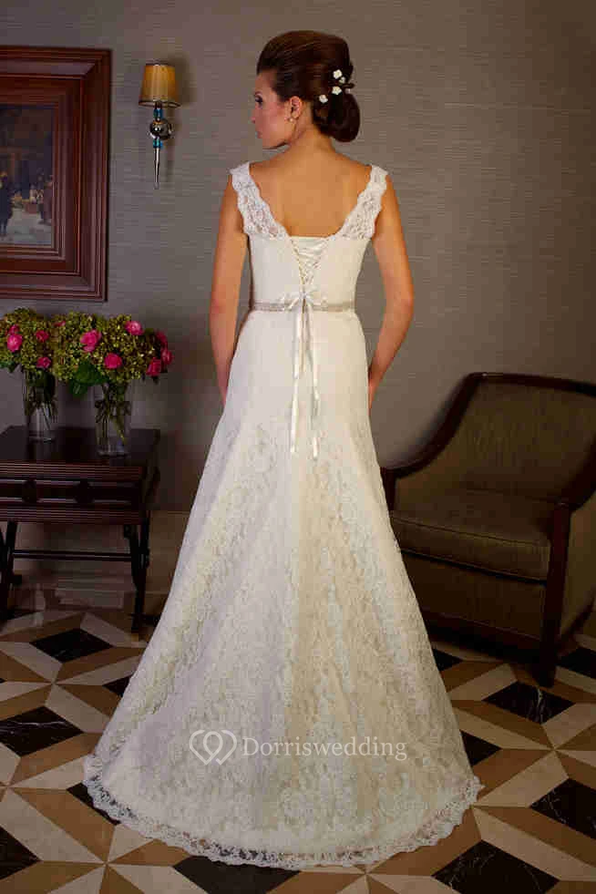 A-Line Sleeveless V-Neck Floor-Length Jeweled Lace Wedding Dress