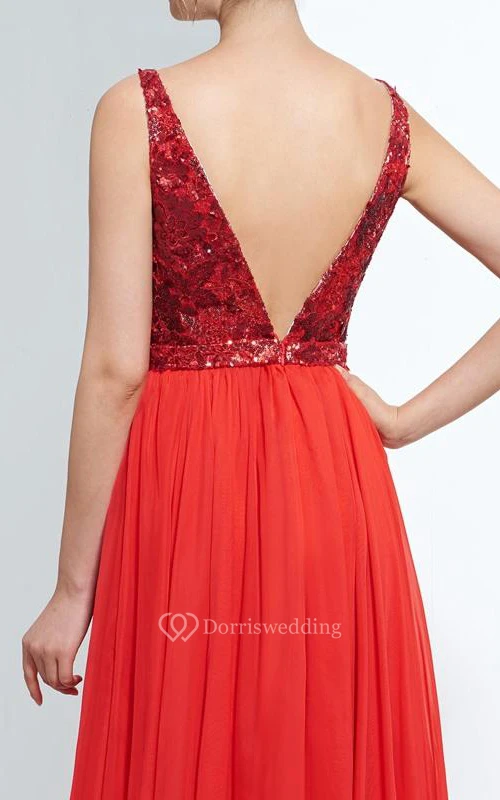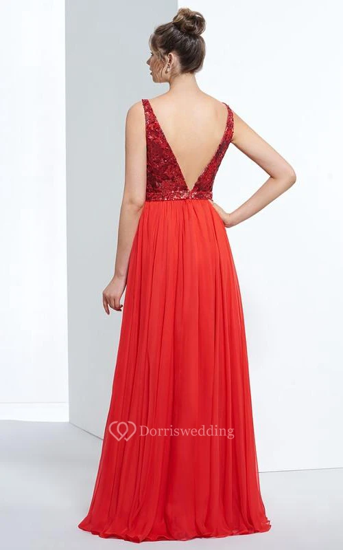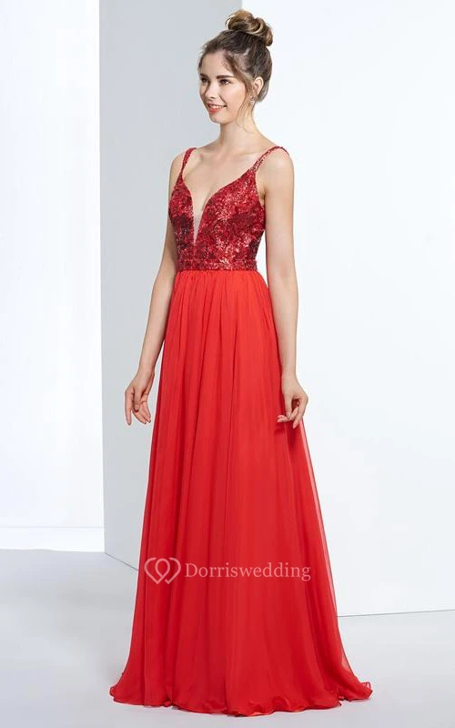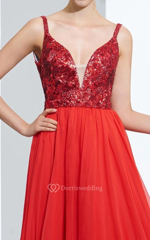 A-Line Spathetti Straps Sequins Floor-Length Prom Dress