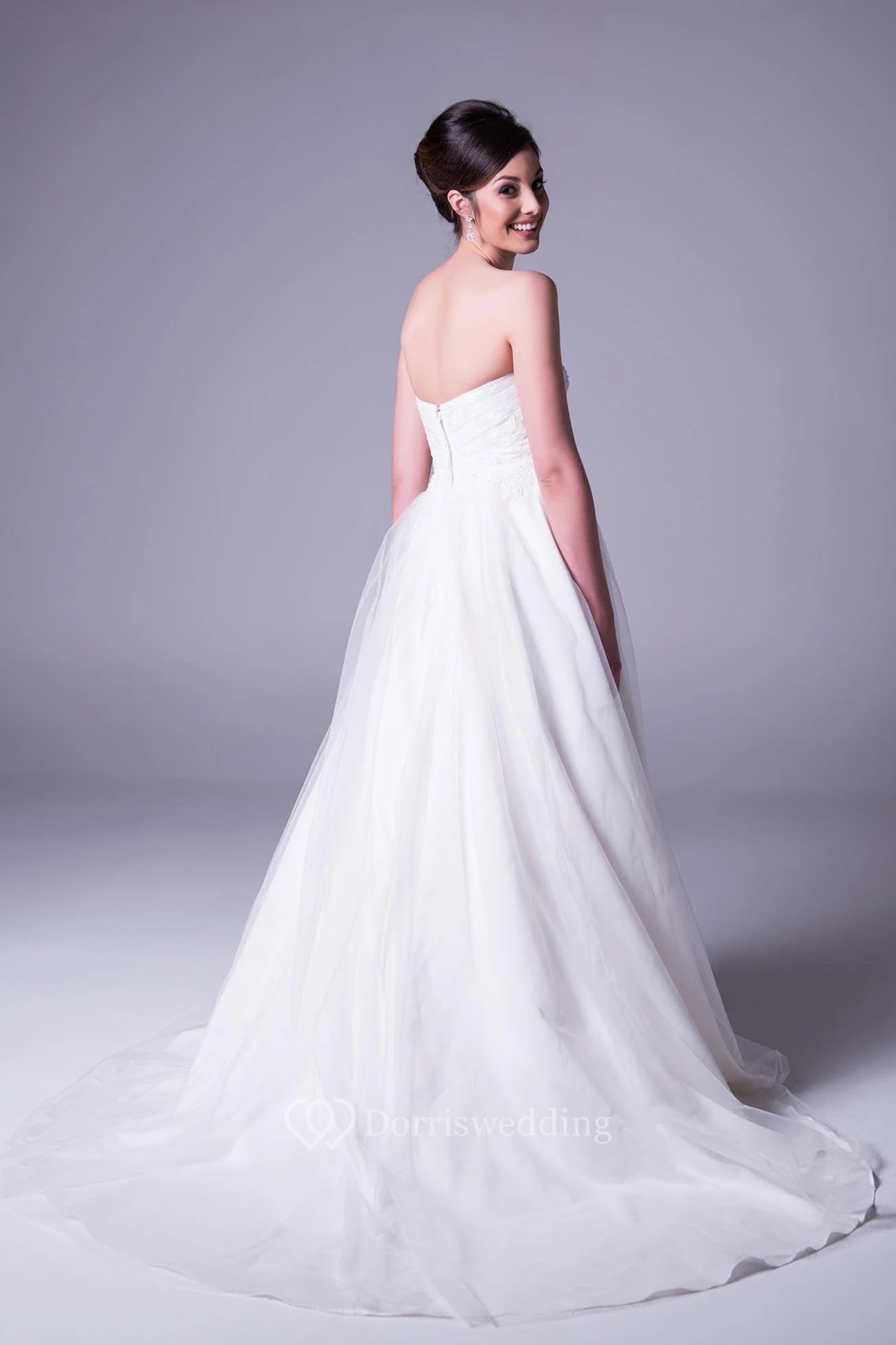A-Line Strapless Appliqued Floor-Length Sleeveless Tulle&Satin Wedding Dress With Beading