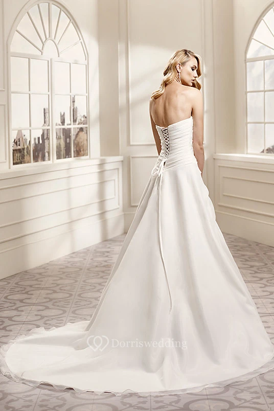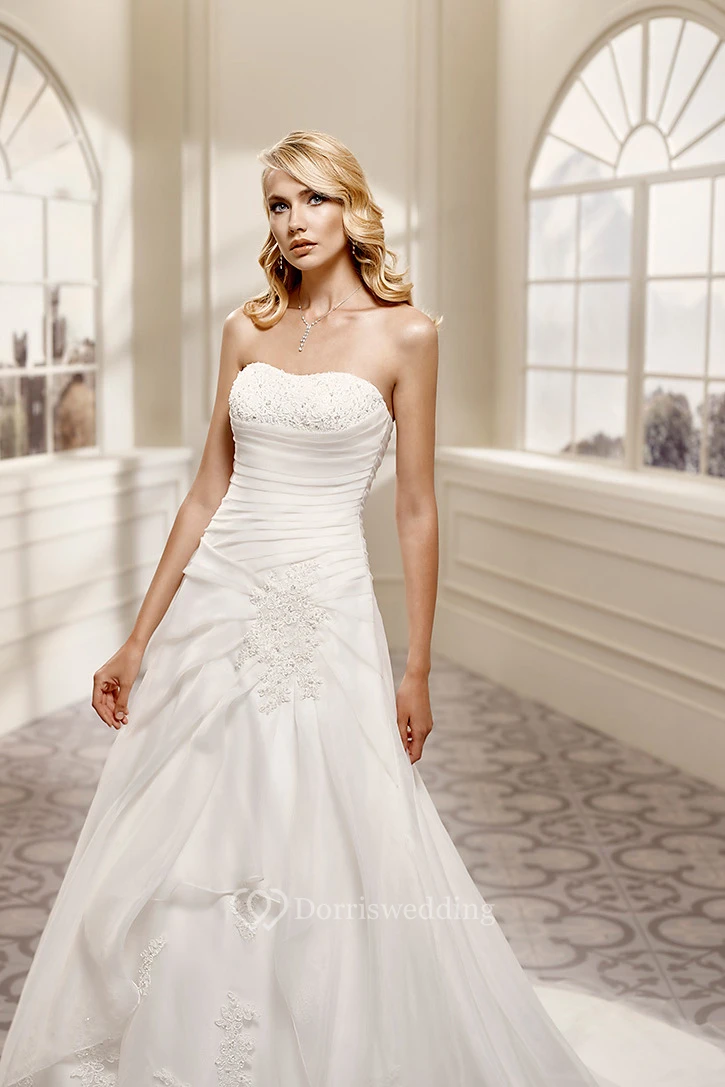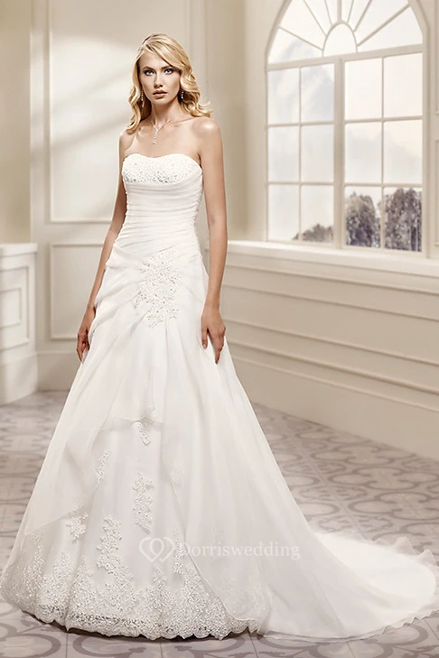 A-Line Strapless Appliqued Sleeveless Maxi Satin Wedding Dress With Draping