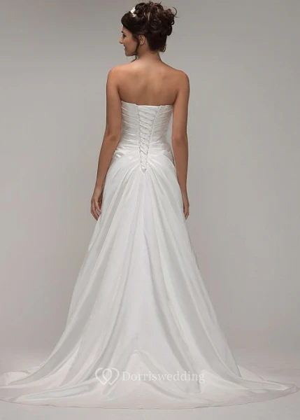 A-Line Strapless Beaded Maxi Satin Wedding Dress With Criss Cross And Broach