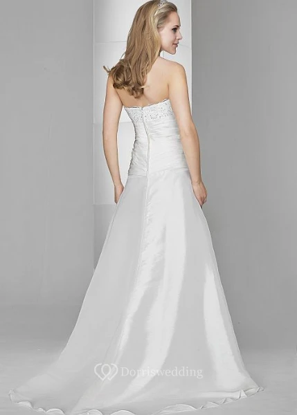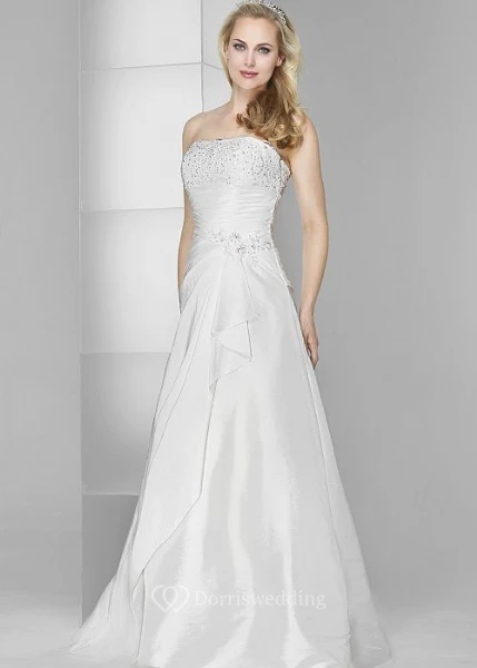 A-Line Strapless Beaded Sleeveless Floor-Length Stretched Satin Wedding Dress With Ruching And Draping