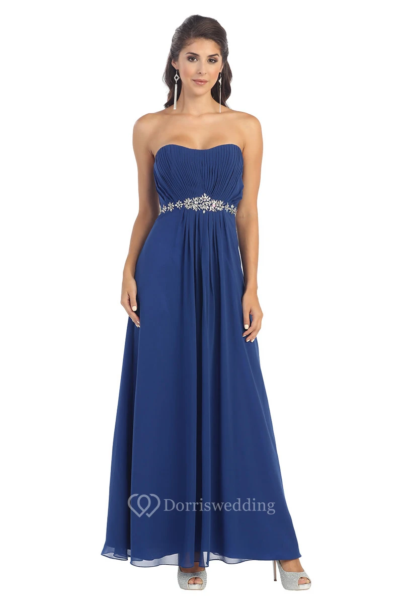 A-Line Strapless Chiffon Corset Back Dress With Waist Jewellery And Pleats