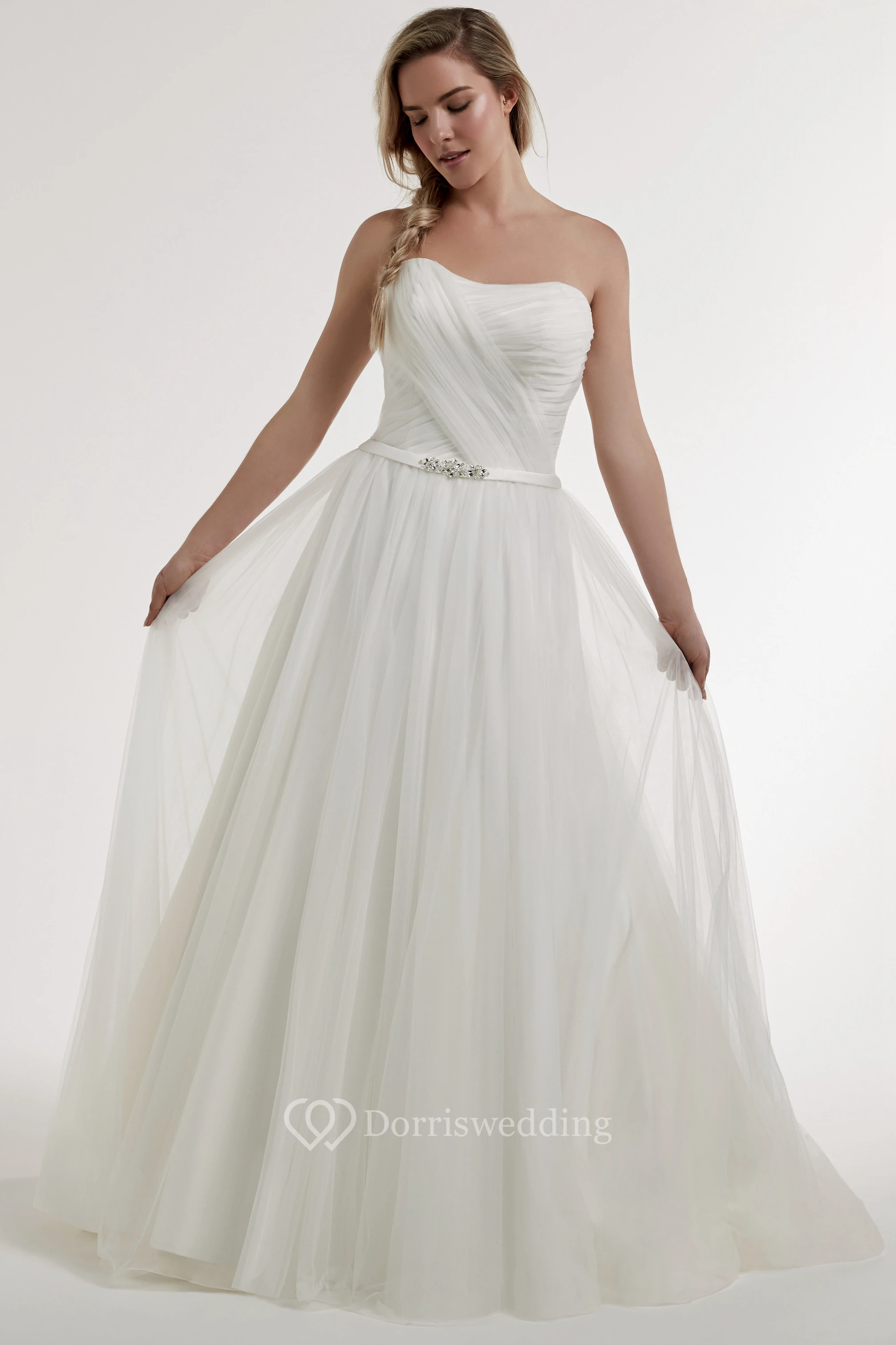 A-Line Strapless Criss-Cross Tulle Wedding Dress