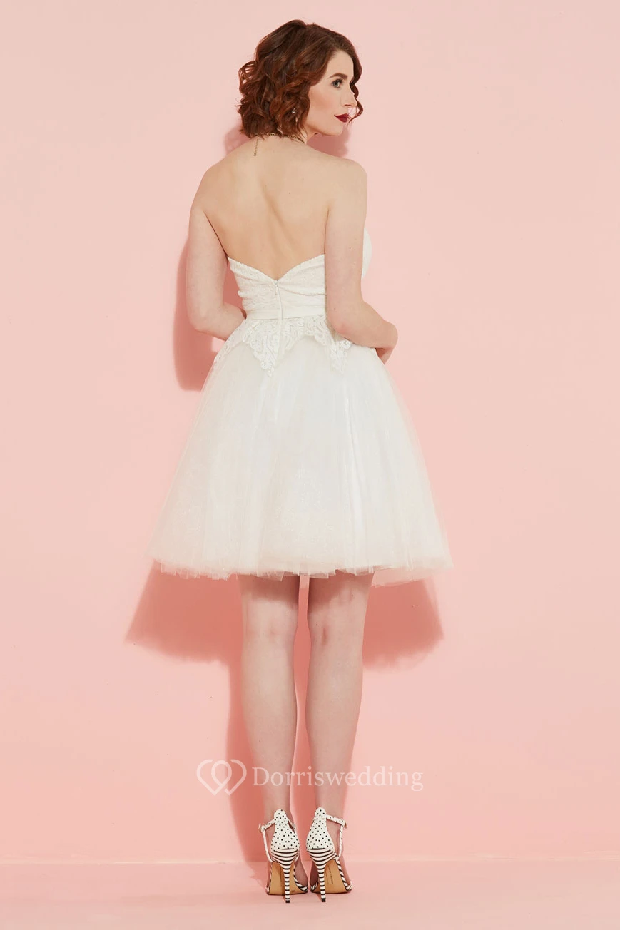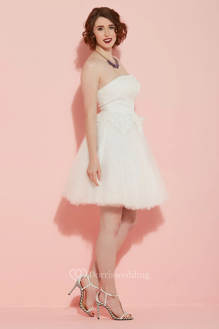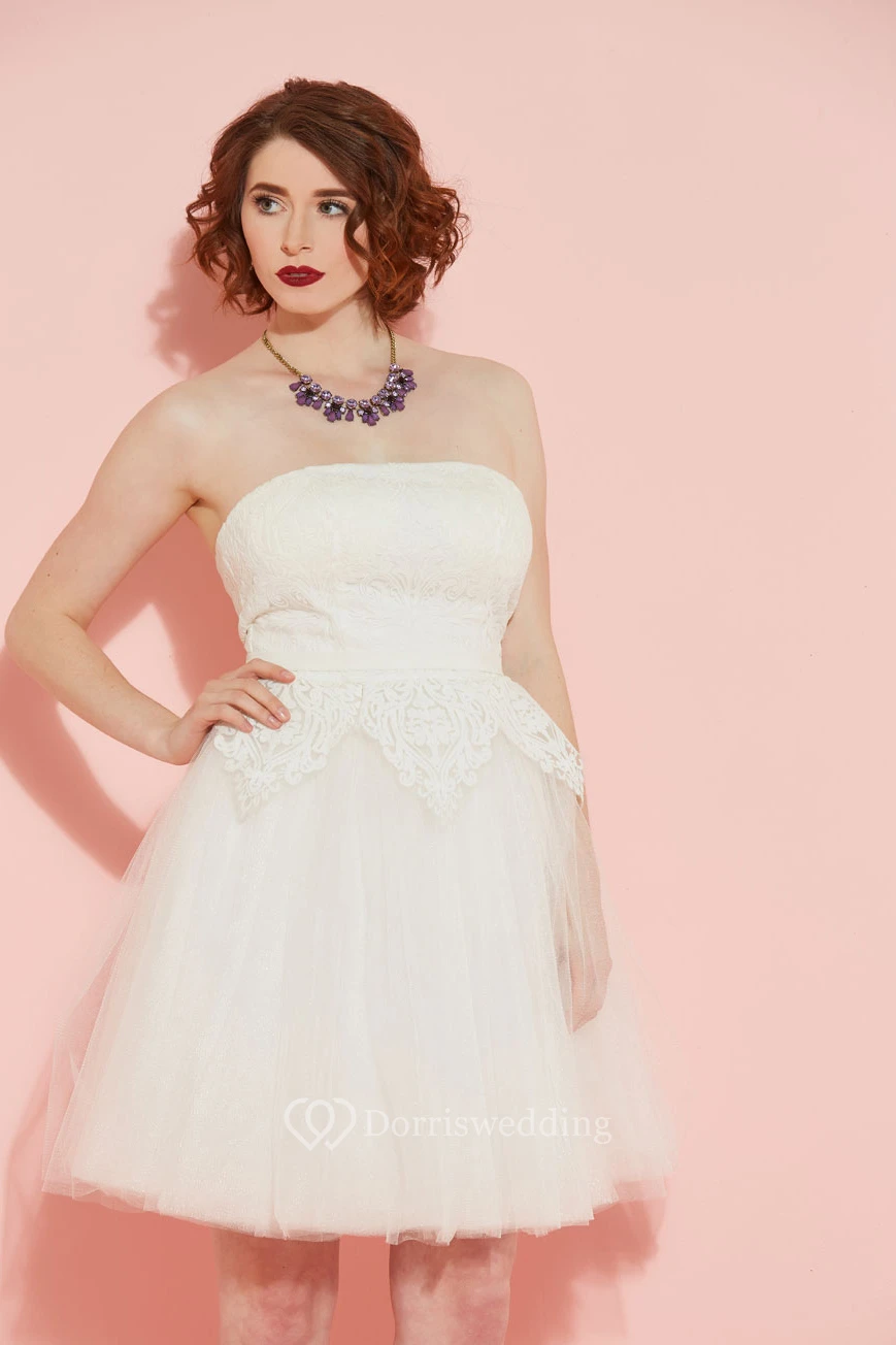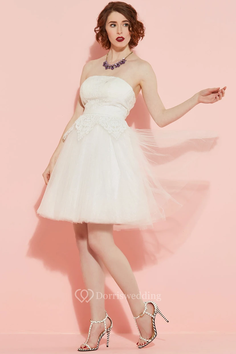 A-Line Strapless Knee-Length Tulle Wedding Dress With Lace