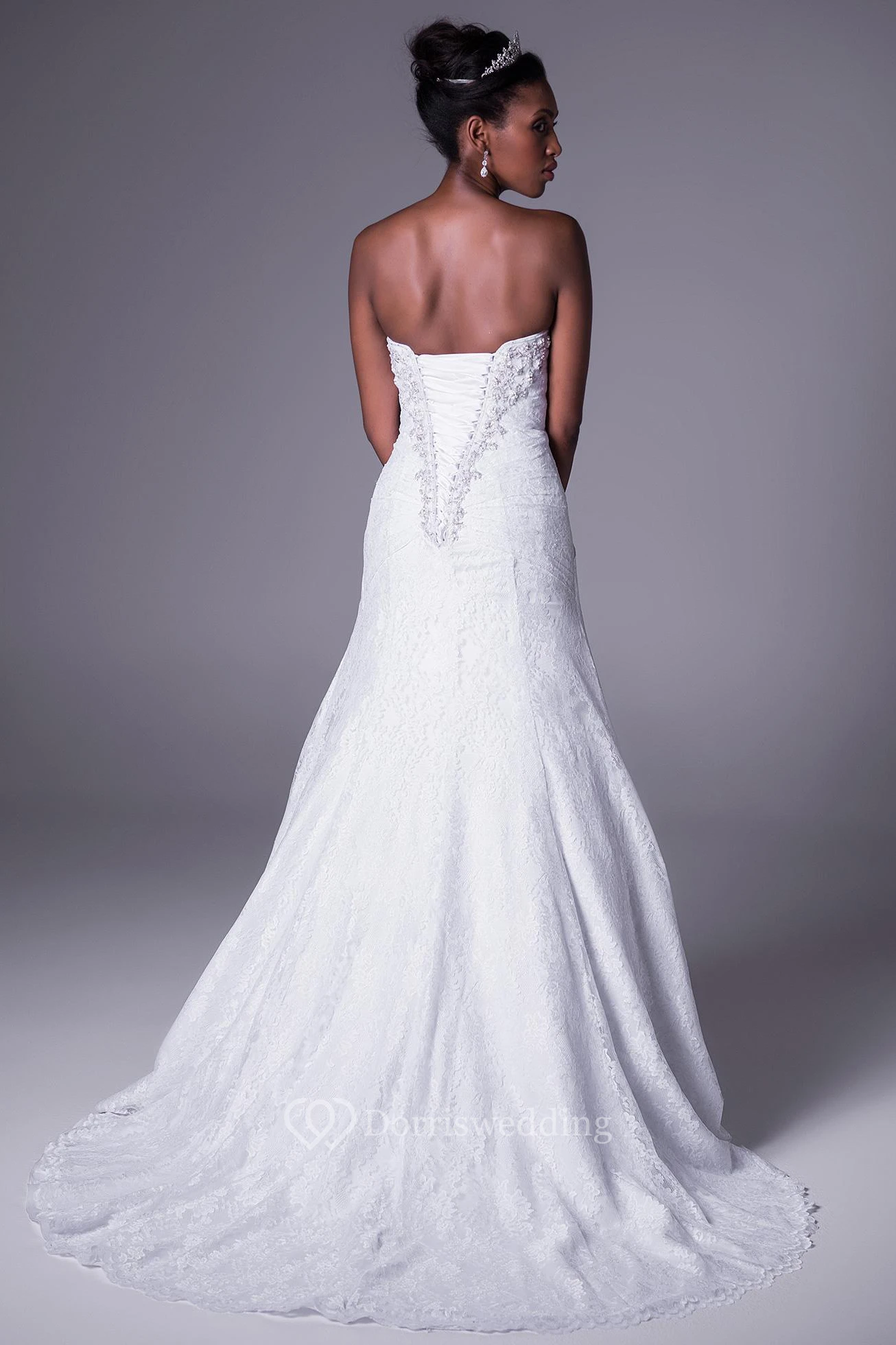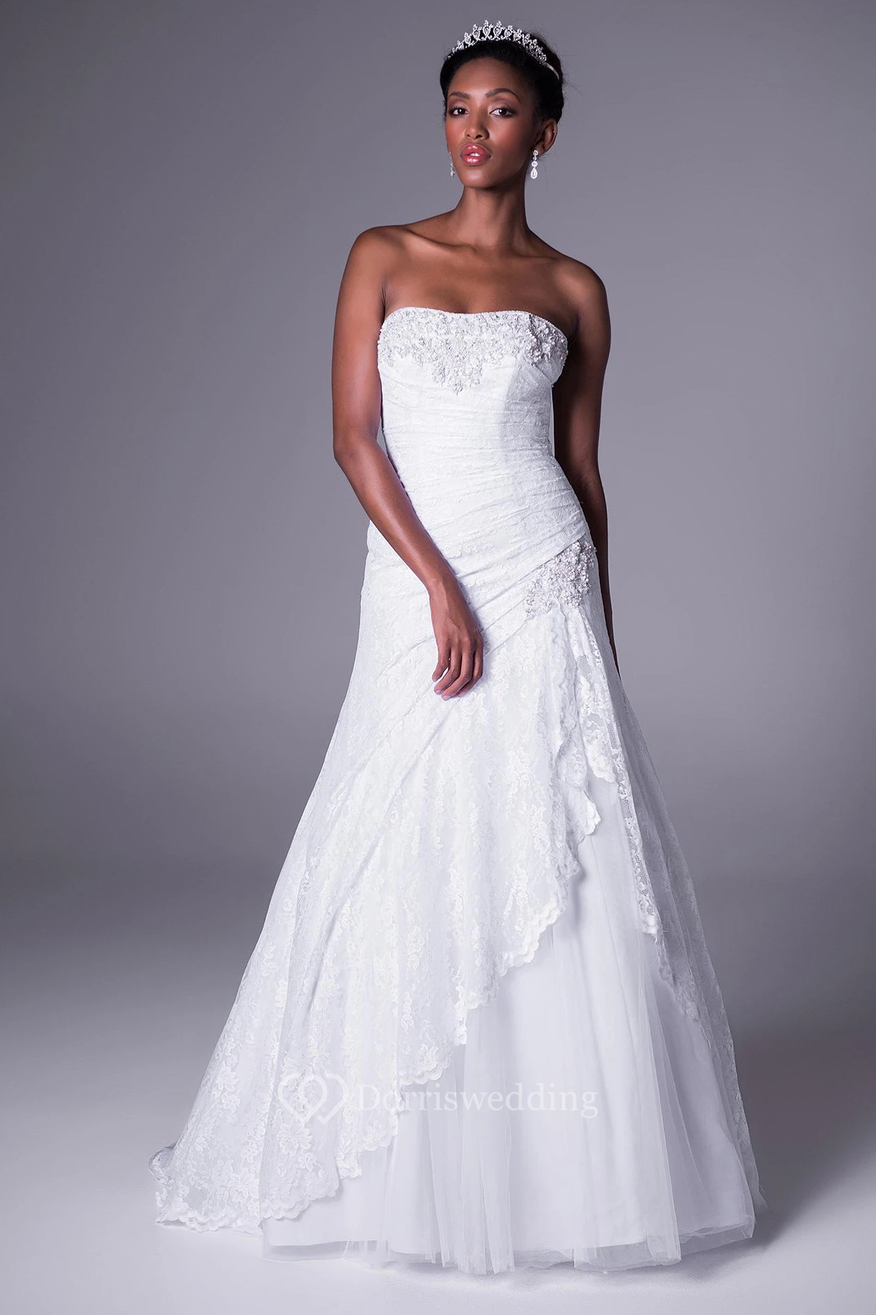 A-Line Strapless Side-Draped Maxi Sleeveless Lace Wedding Dress With Appliques
