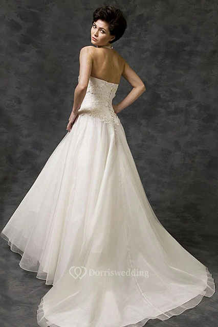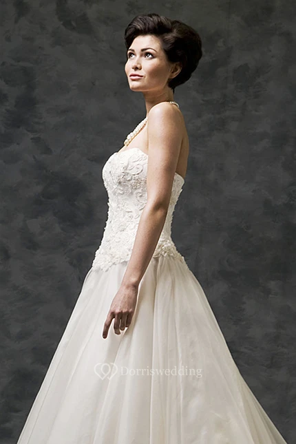 A-Line Strapless Tulle&Satin Wedding Dress With Watteau Train