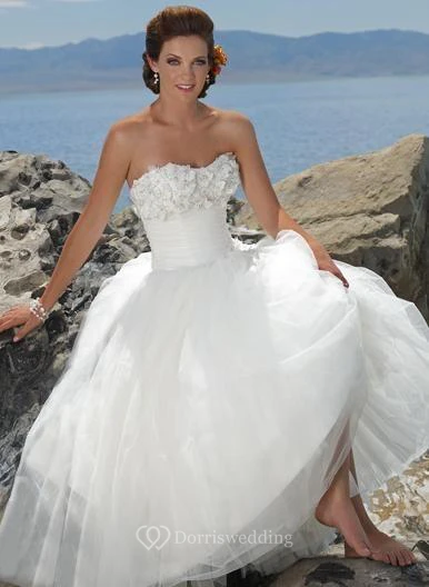 A-line Strapless Tulle Wedding Dress
