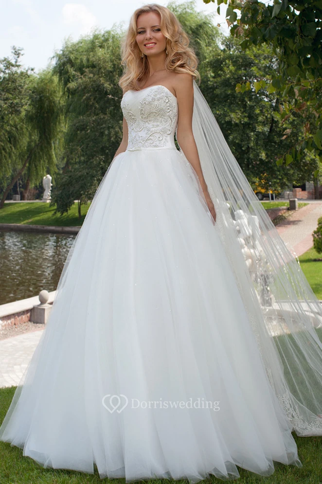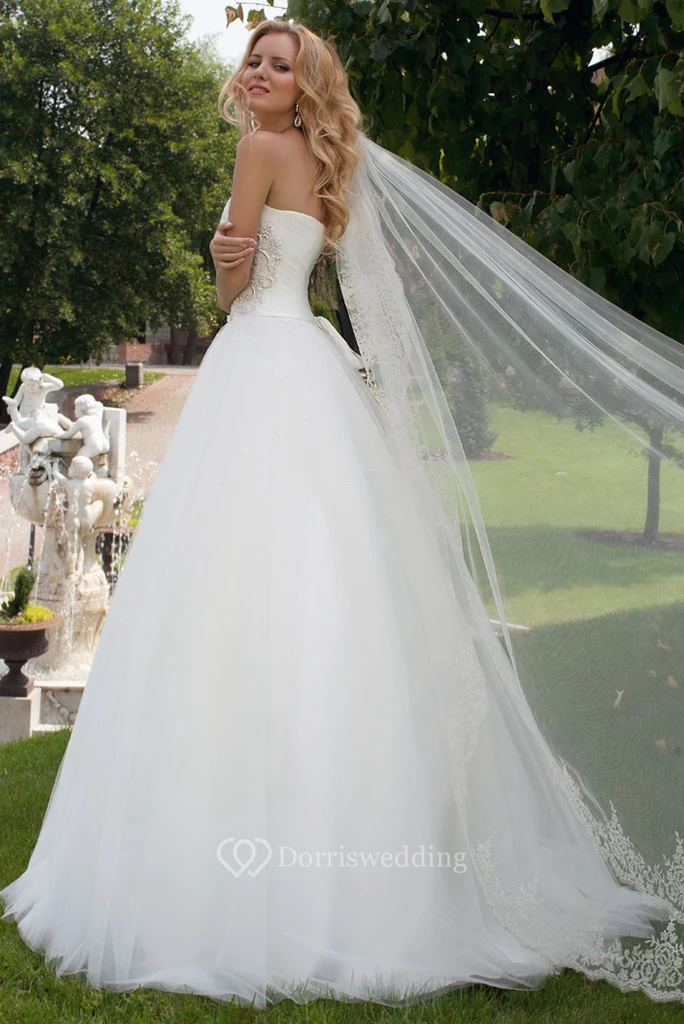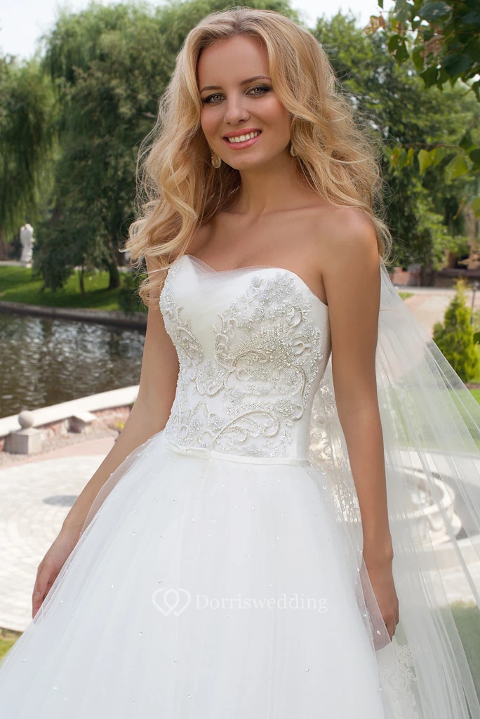 A-Line Strapless Tulle Wedding Dress