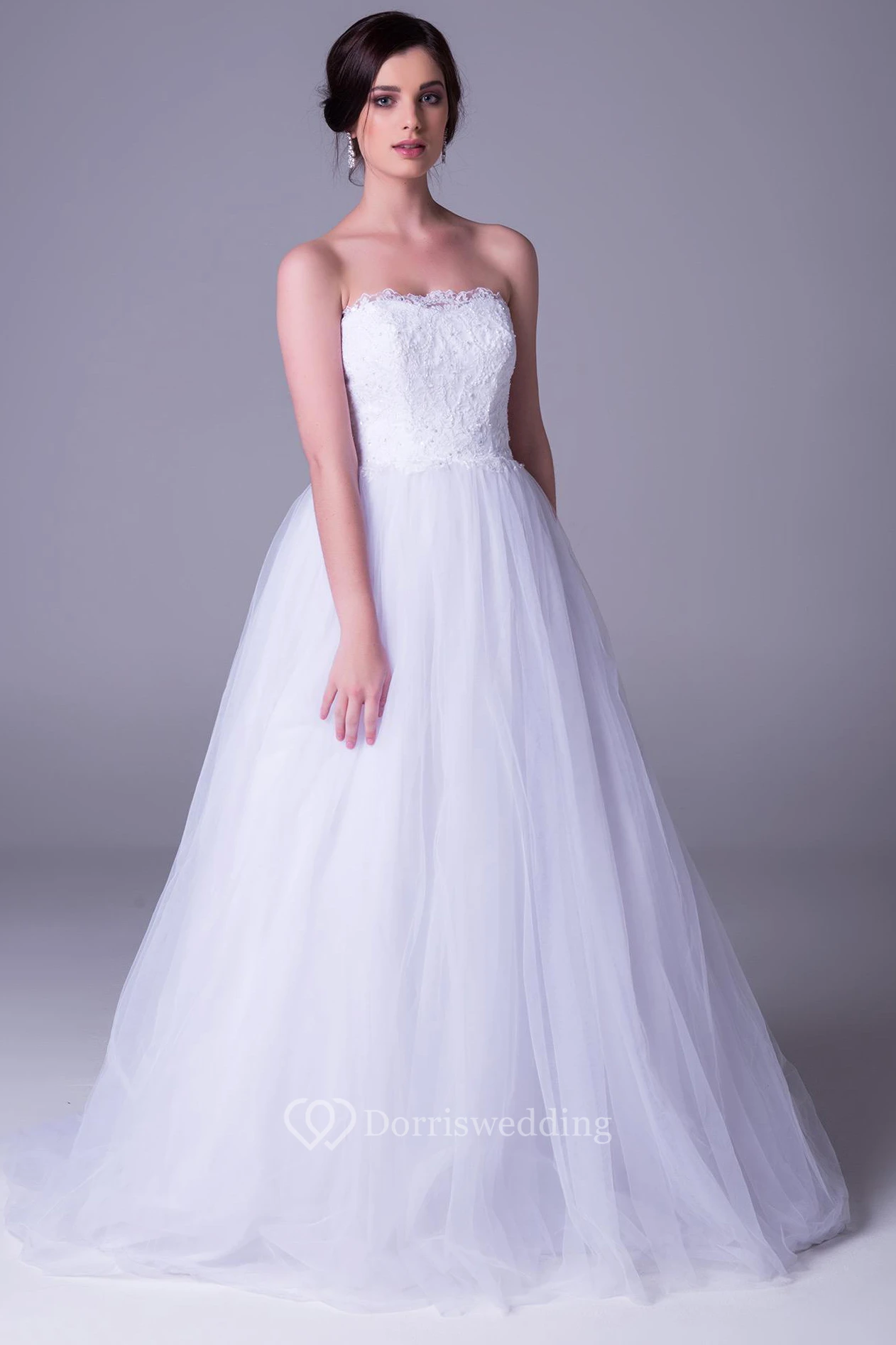 A-Line Strapless Tulle Wedding Dress With Lace
