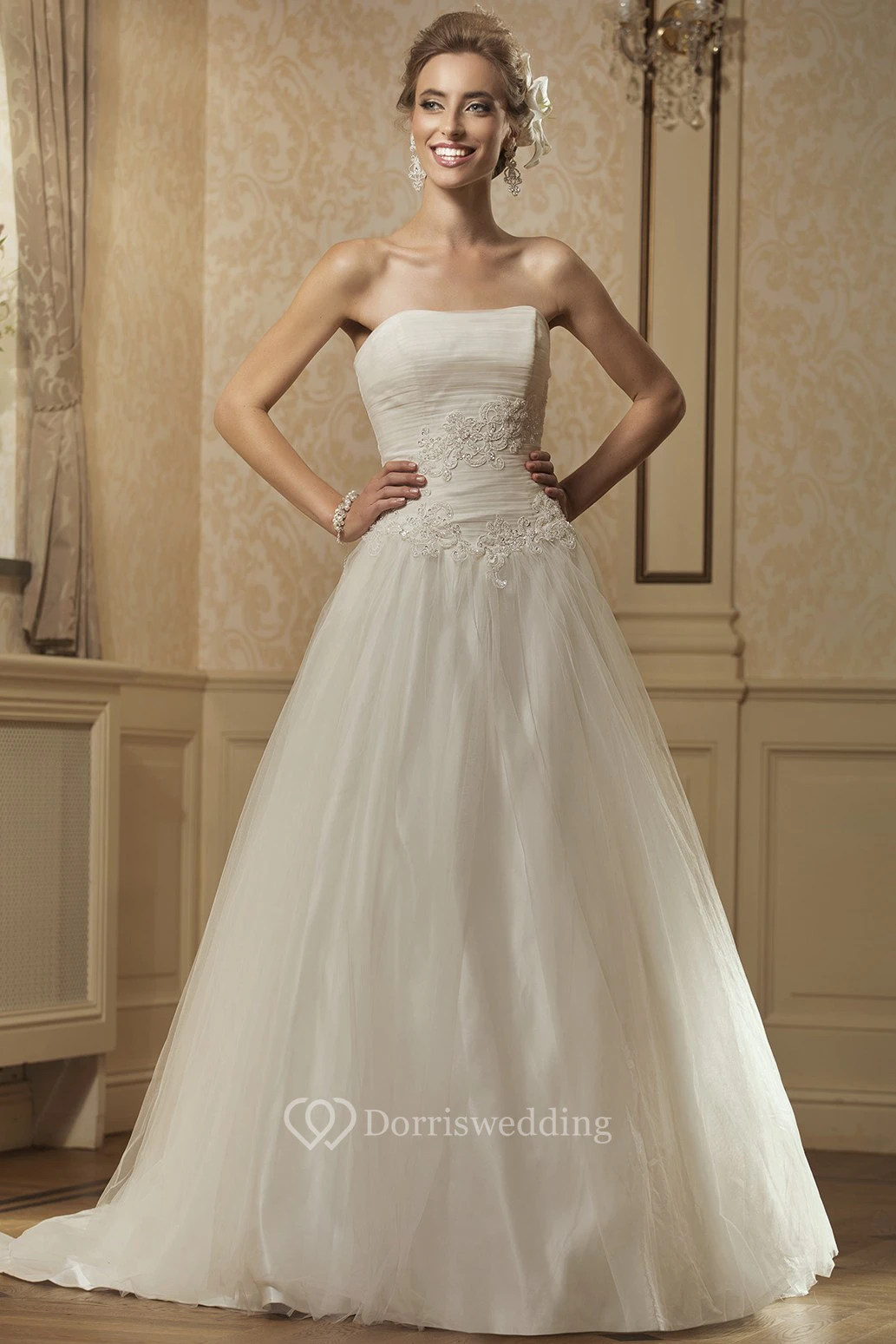• Hemline/Train: Floor-length