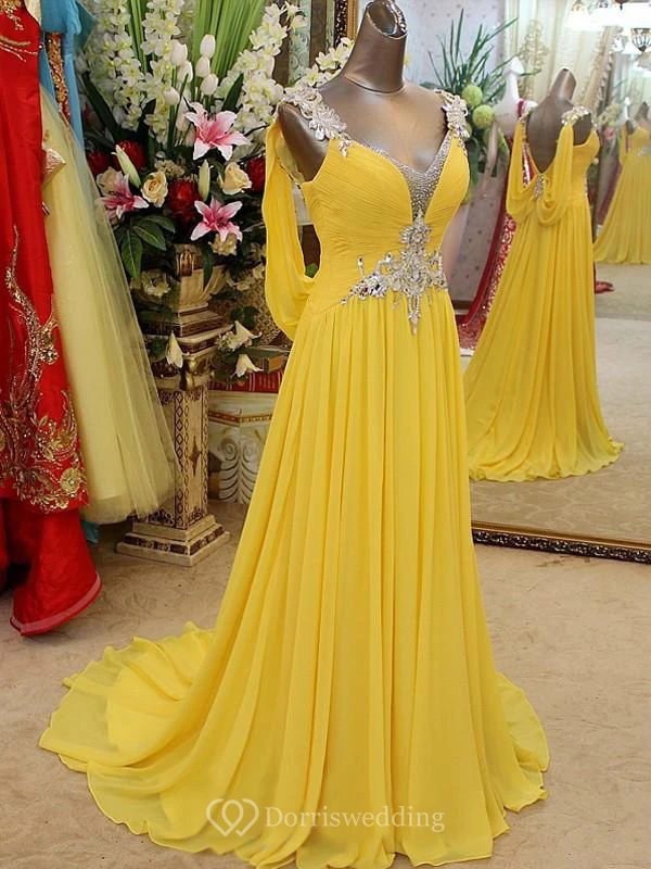 A-line Straps Sleeveless Beading Sweep Train Chiffon Dresses