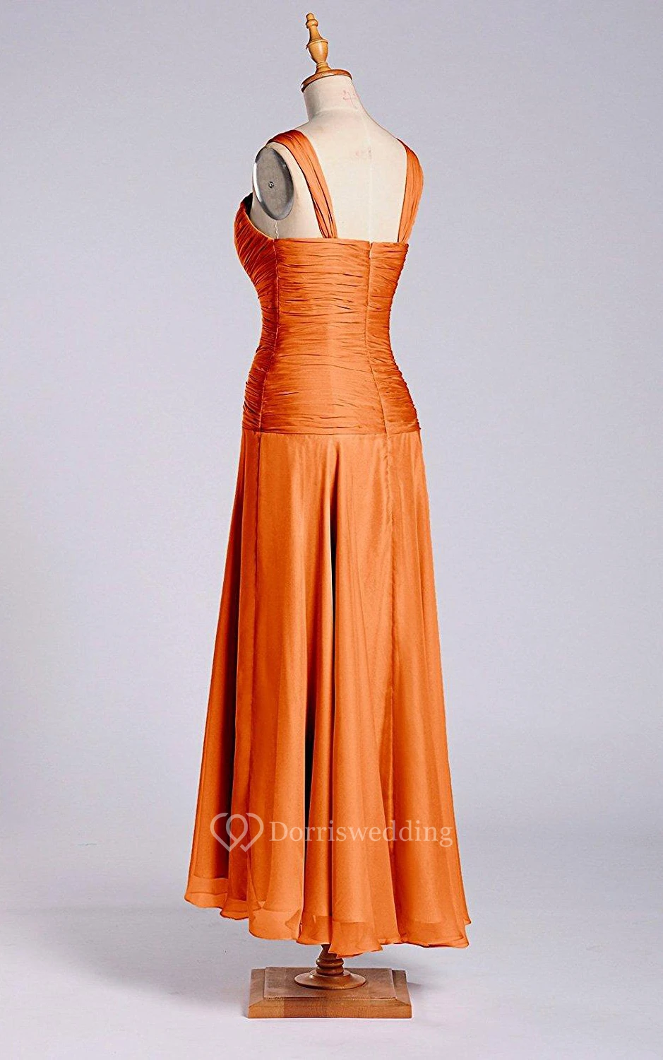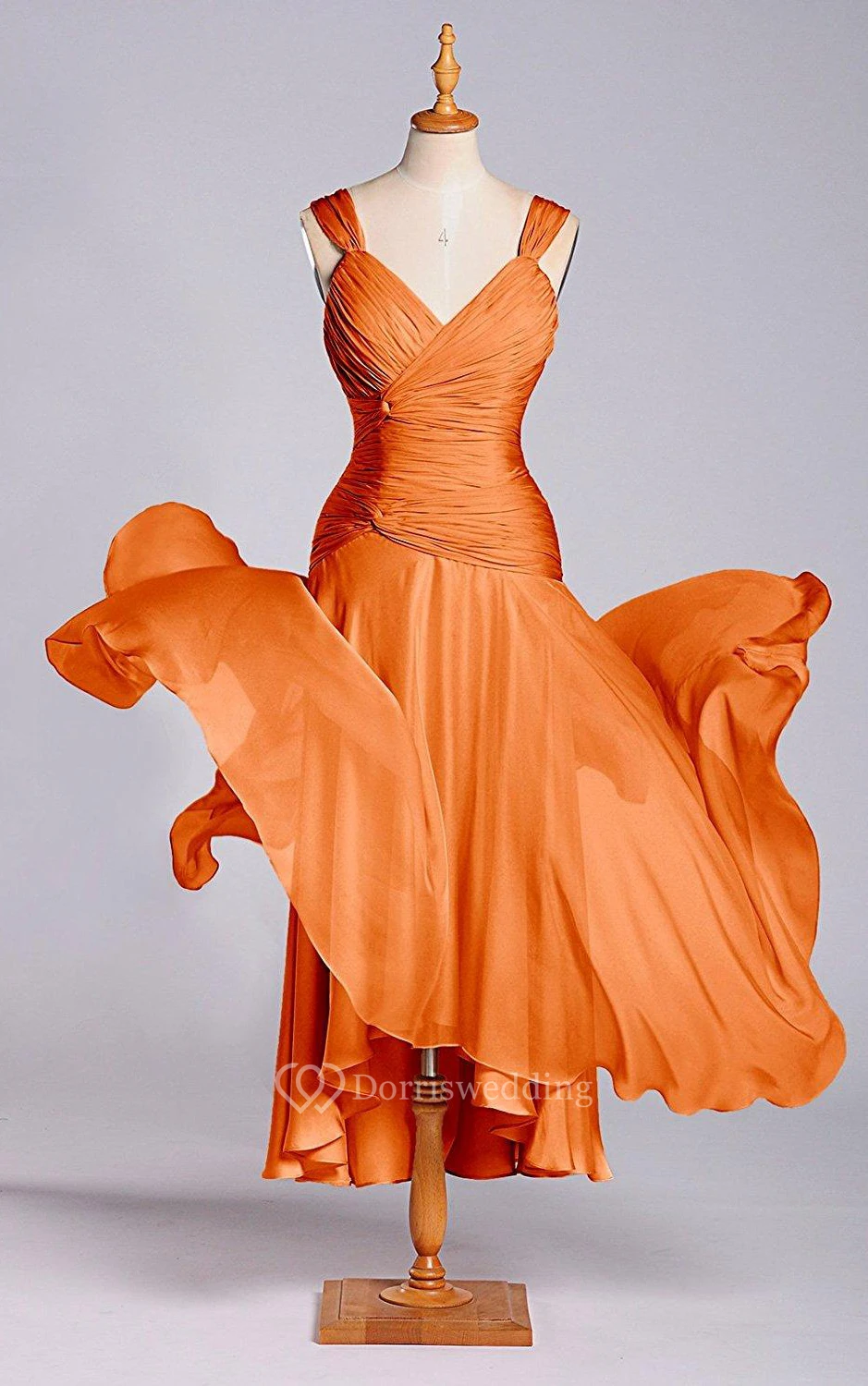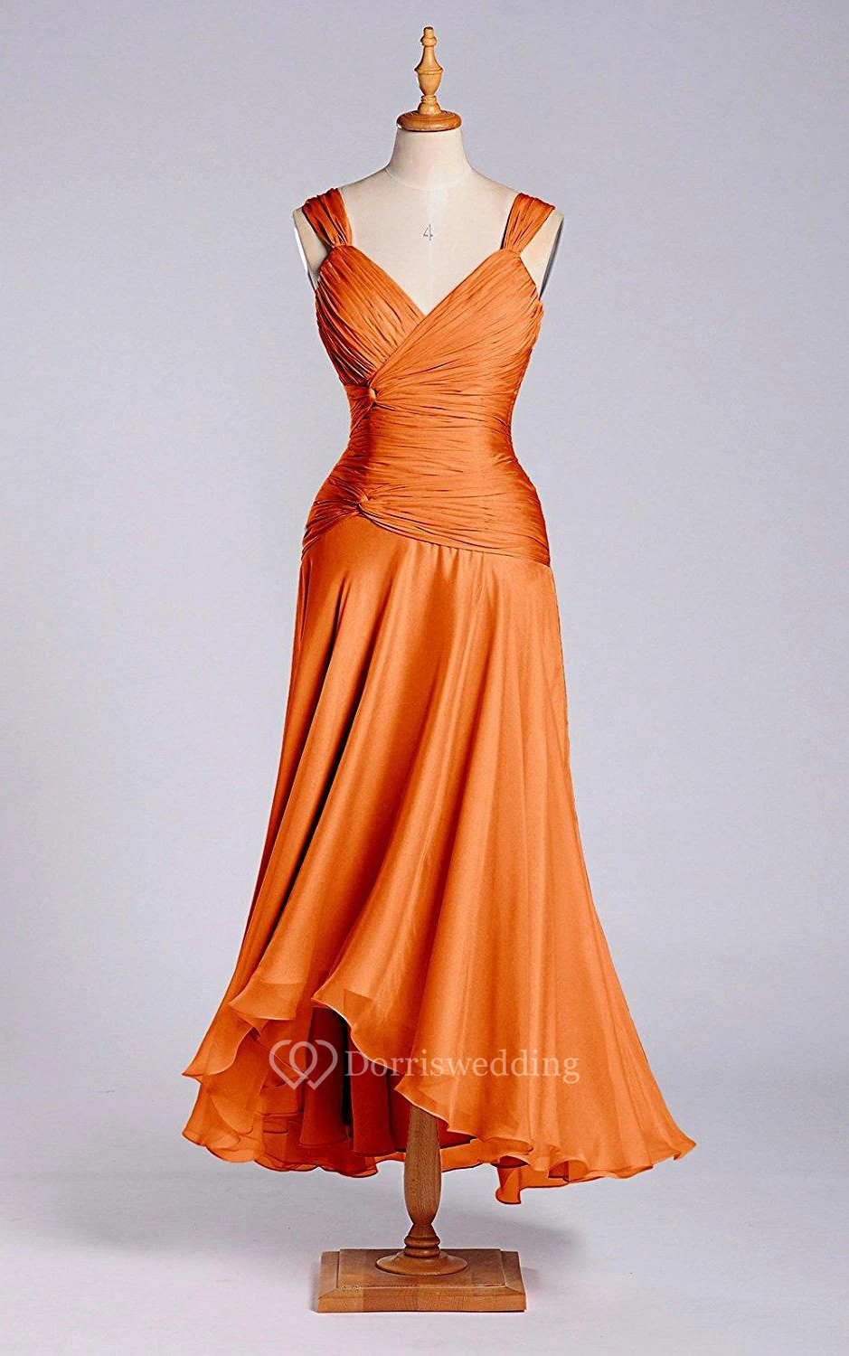 A-line Straps Tea-length Dress with Ruching and Zipper