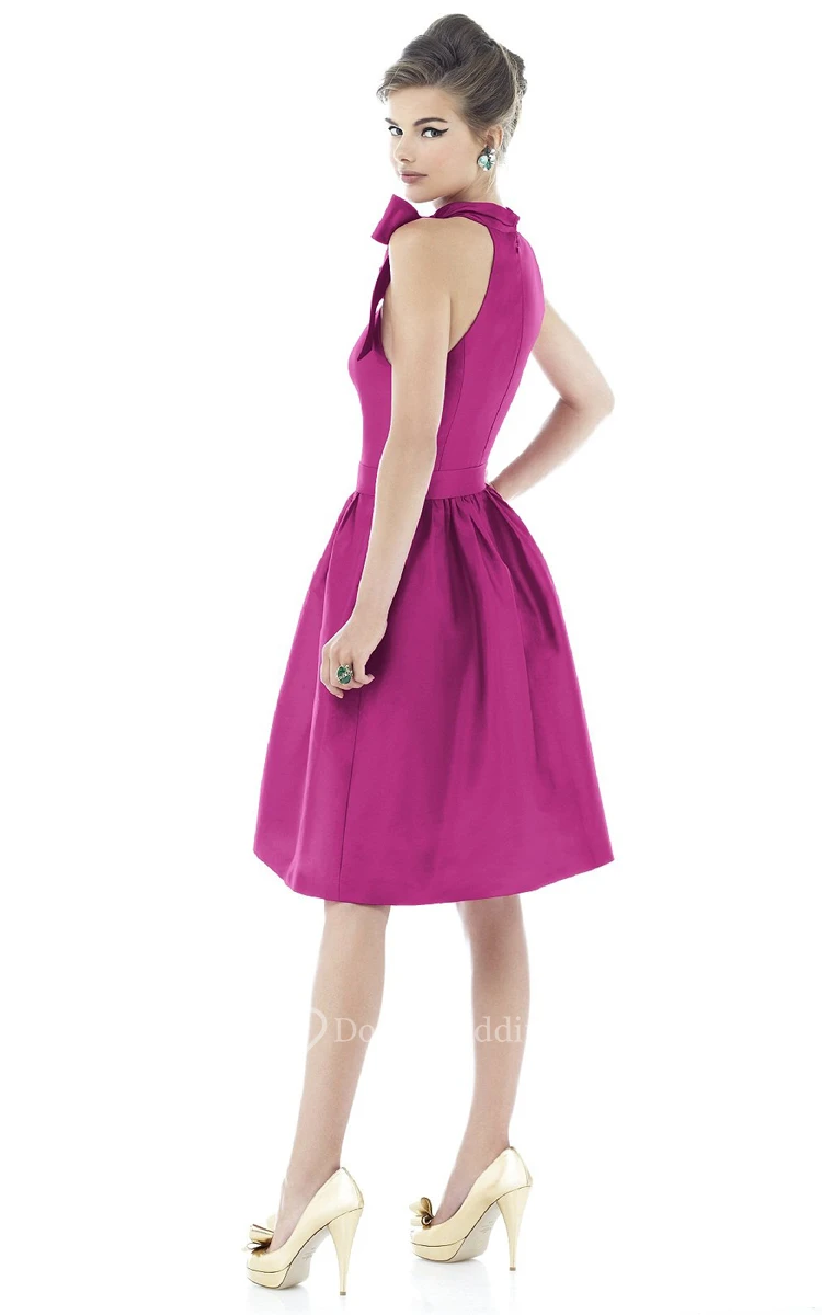 A-Line Stunning-High-Neck Short Dress With Bow