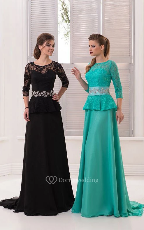 A-Line Sweep Jewel 3 Chiffon Crystal Detailing Ruffles Zipper Dress