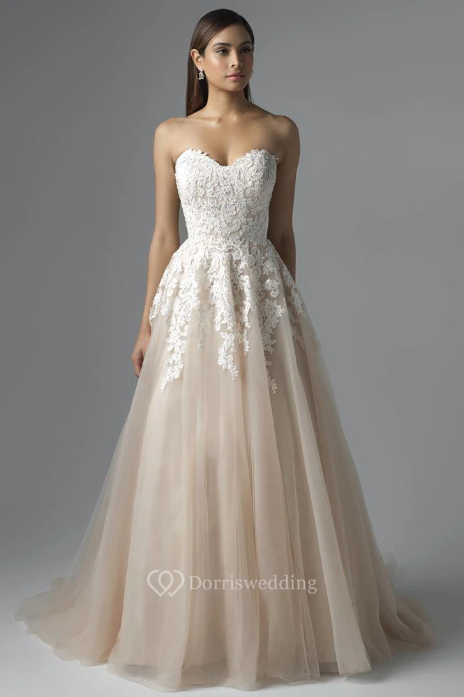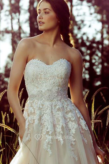 The lace and tulle fabric is so beautiful!! The band design on the back also allows me to adjust the size without having to go to a tailor!! What a perfect dress!! My wedding is going to be perfect!