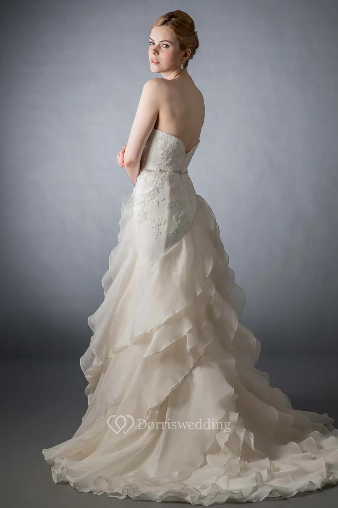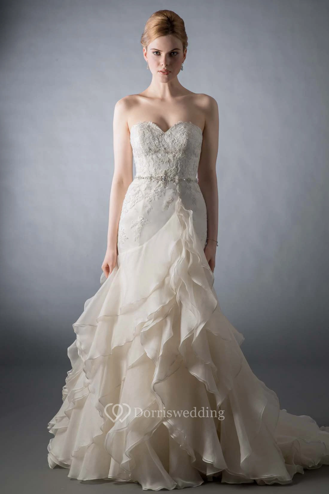 • Embellishments: Cascading Ruffles, Appliques, Tiers