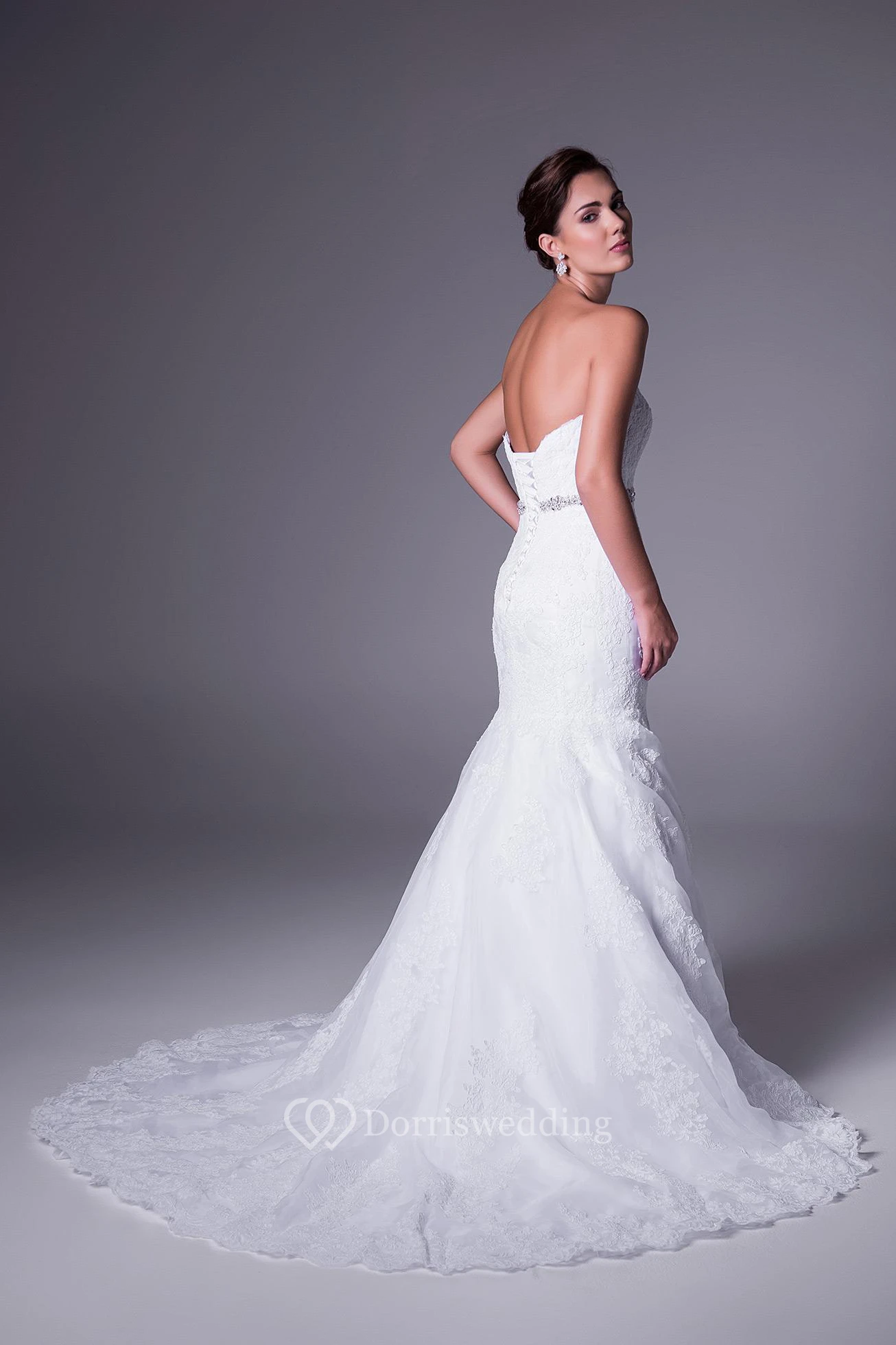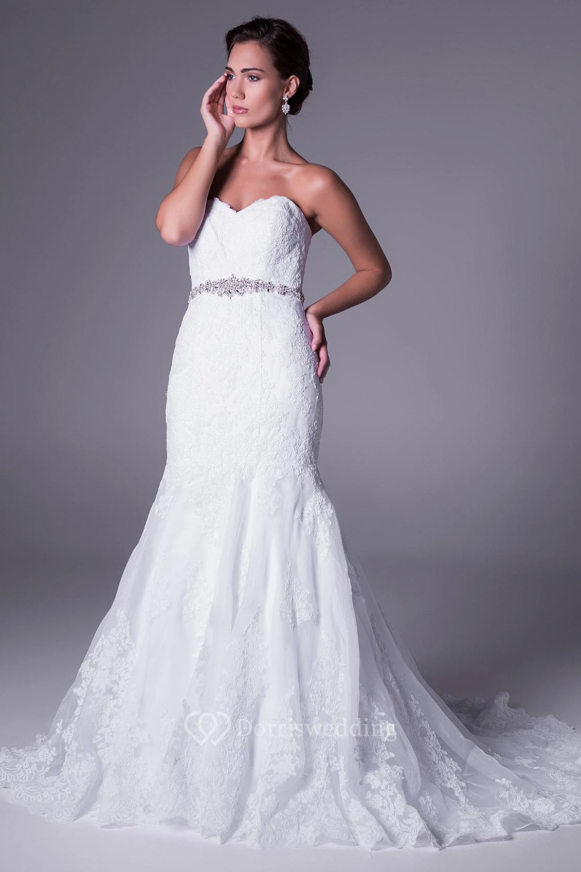A-Line Sweetheart Appliqued Sleeveless Long Lace Wedding Dress With Waist Jewellery