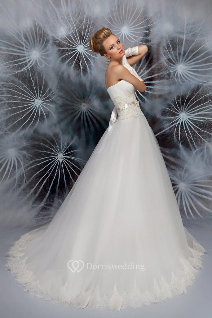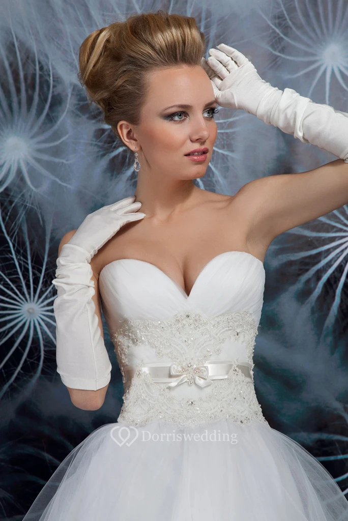 A-Line Sweetheart Appliqued Sleeveless Tulle Wedding Dress