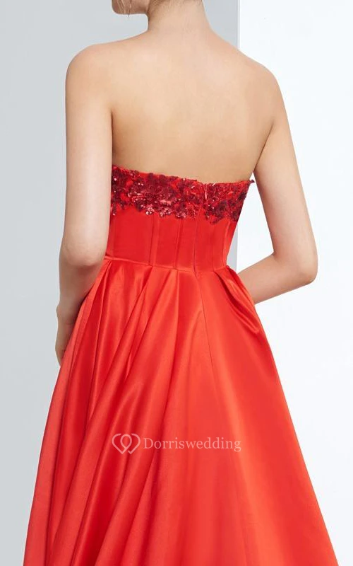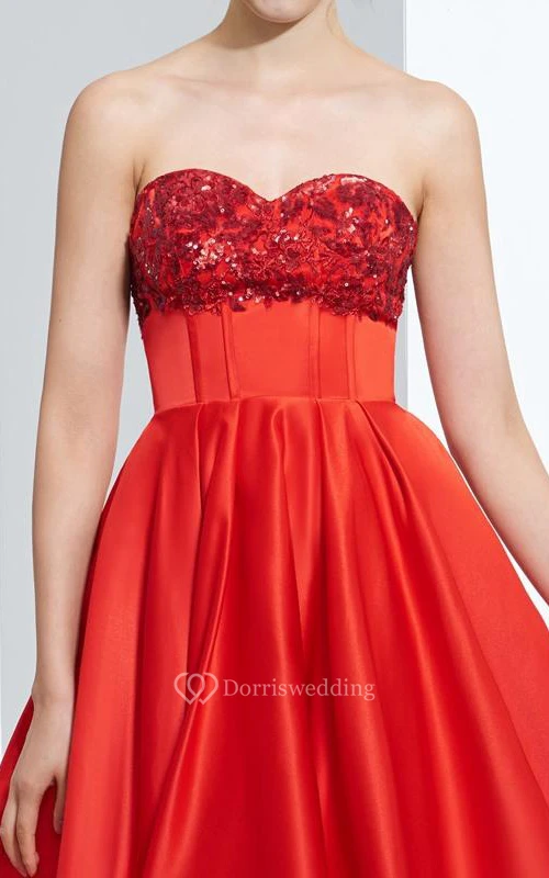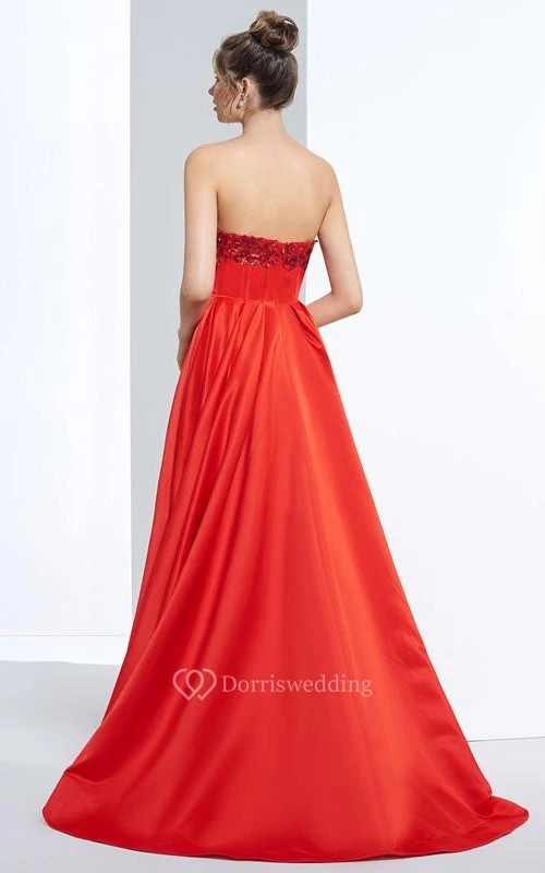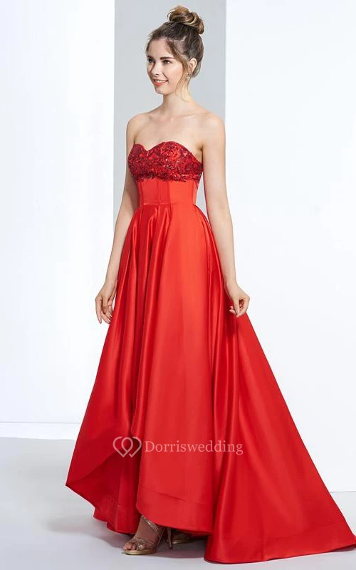 A-Line Sweetheart Appliques Sequins Asymmetry Sweep Train Prom Dress