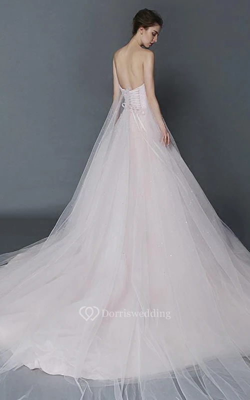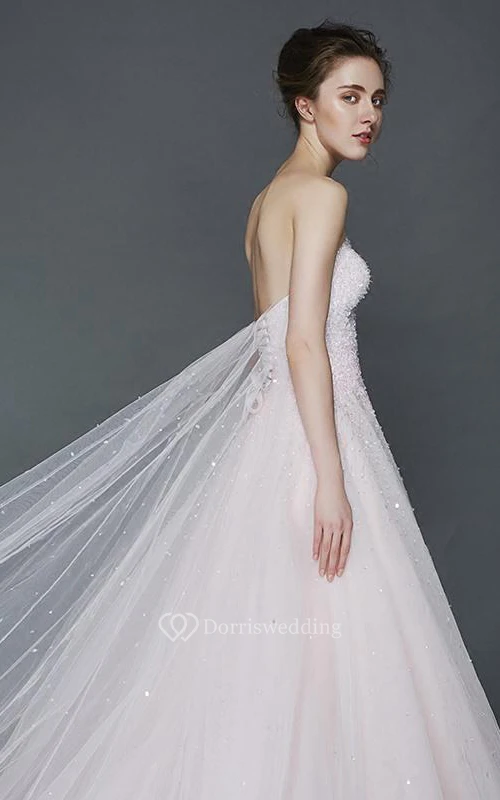 A-Line Sweetheart Beaded Court Train Prom Dress