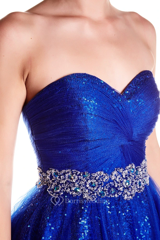 A-Line Sweetheart Beaded Sleeveless Short Sequins&Tulle Prom Dress With Waist Jewellery And Ruffles
