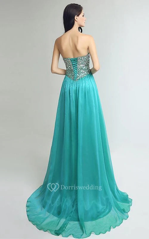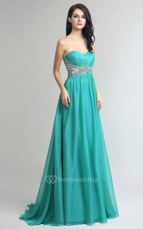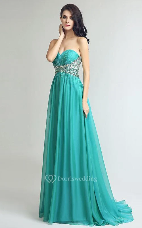 A-Line Sweetheart Beading Crystal Sequins Sweep Train Prom Dress