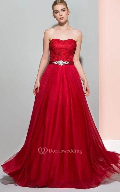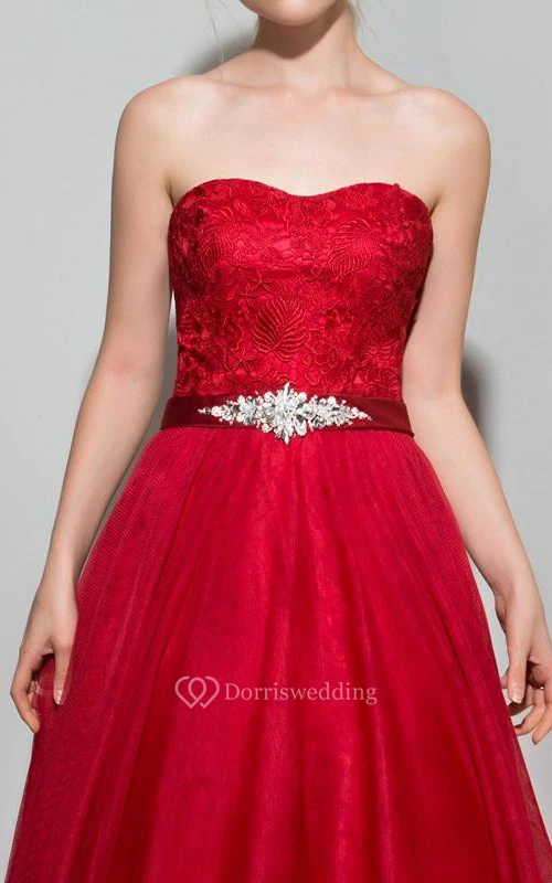 A-Line Sweetheart Beading Lace Sashes Floor-Length Prom Dress