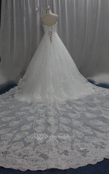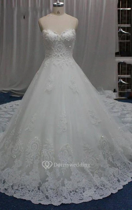A-Line Sweetheart Bell Beading Appliques Chapel Train Backless Zipper Corset Back Chiffon Tulle Lace Sequins Organza Satin Taffeta Dress