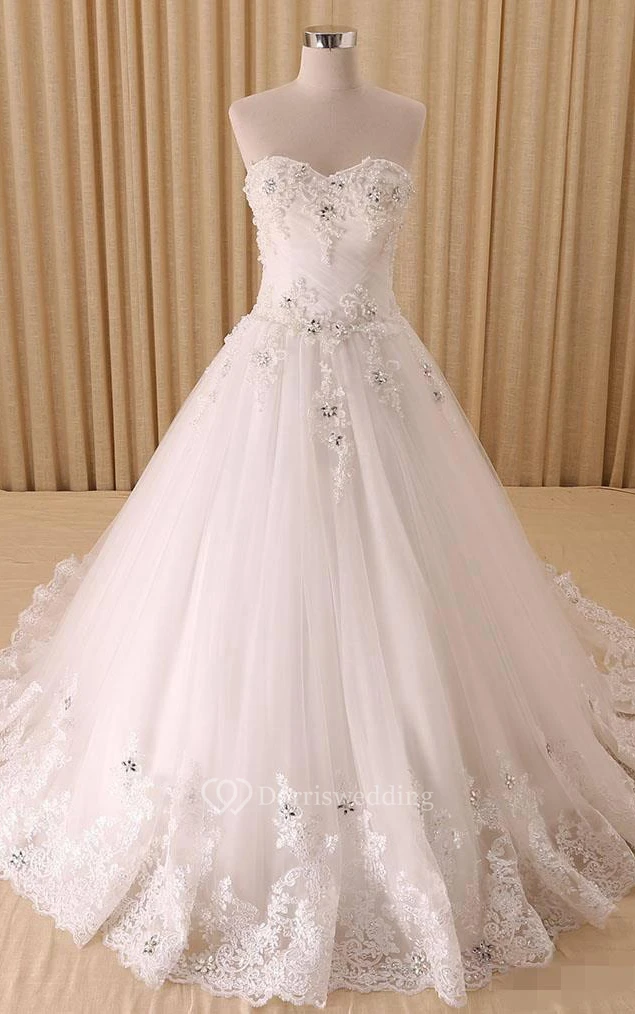 A-Line Sweetheart Bell Pleats Beading Appliques Court Train Zipper Lace-Up Back Chiffon Tulle Lace Sequins Organza Satin Taffeta Dress