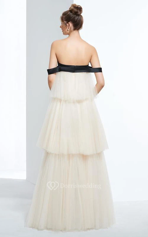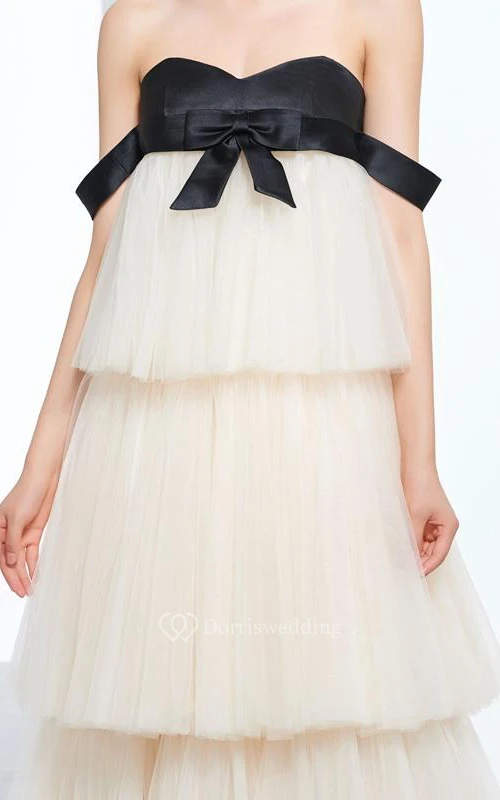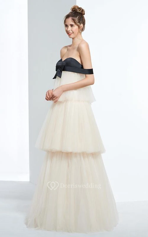 A-Line Sweetheart Bowknot Tiered Floor-Length Prom Dress