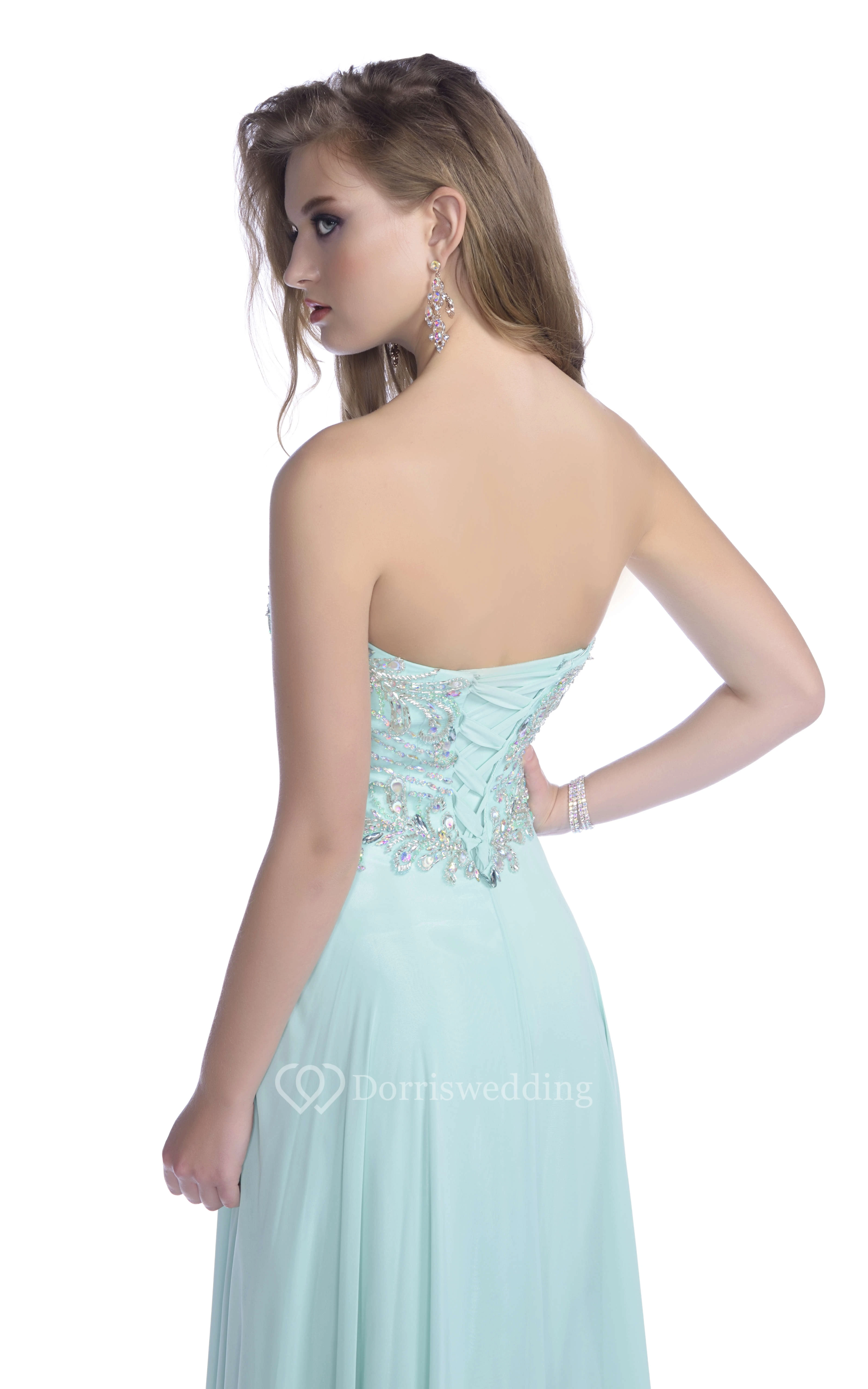 A-Line Sweetheart Chiffon Prom Dress Featuring Rhinestone Bodice And Lace-Up Back