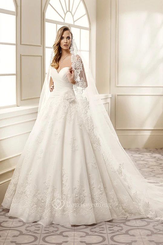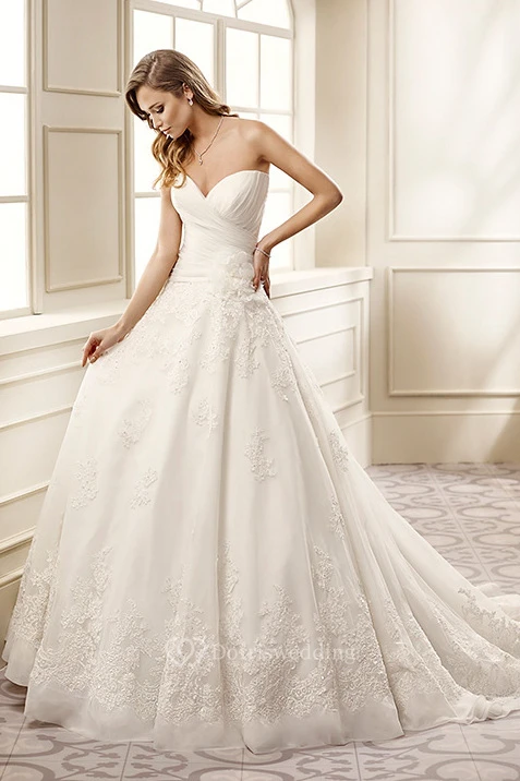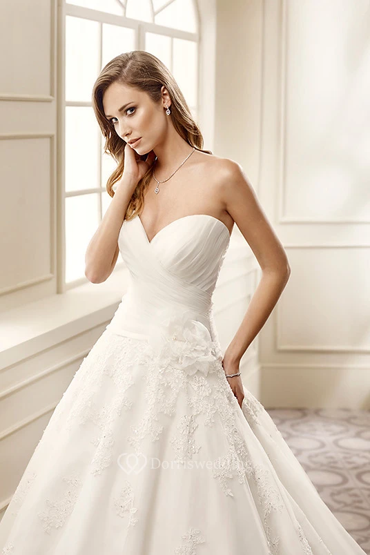 A-Line Sweetheart Criss-Cross Organza Wedding Dress With Flower