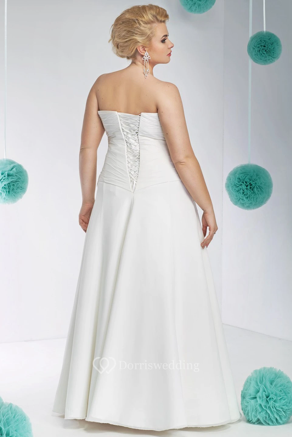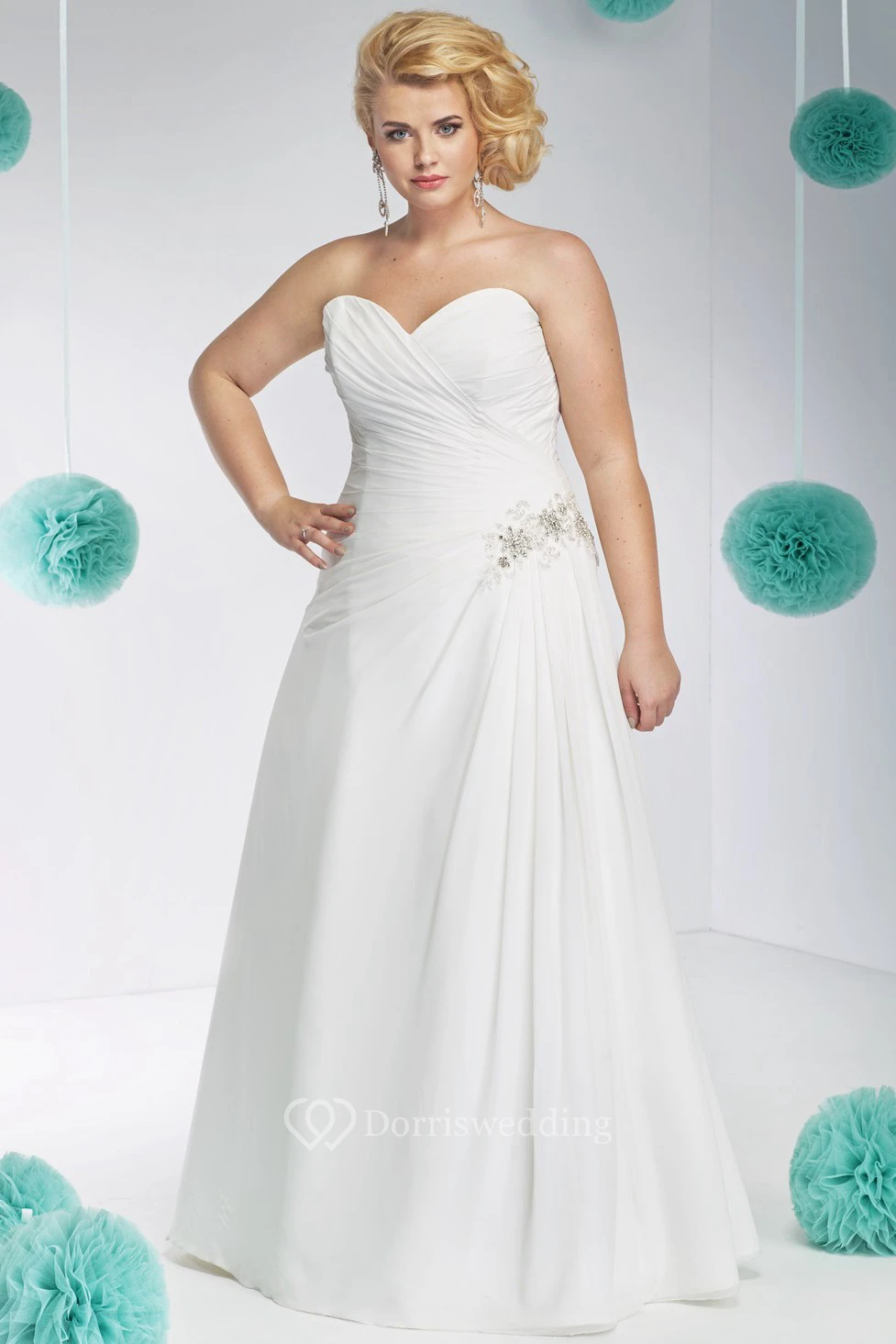 A-Line Sweetheart Criss-Cross Sleeveless Floor-Length Chiffon Plus Size Wedding Dress Styles With Beading