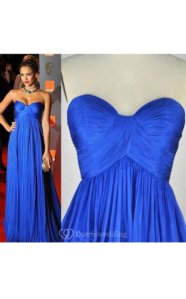 A-line Sweetheart Draping Long Pleats Chiffon Dress