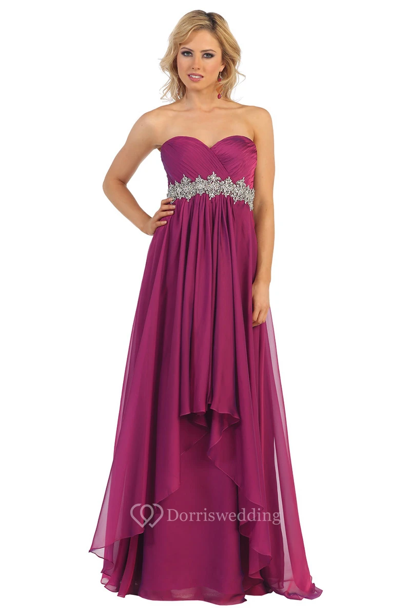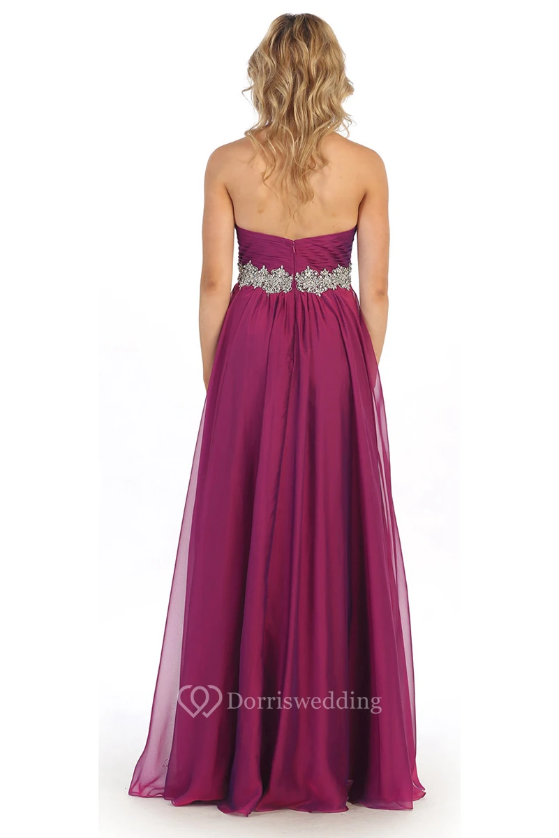 A-Line Sweetheart Empire Chiffon Backless Dress With Criss Cross And Waist Jewellery