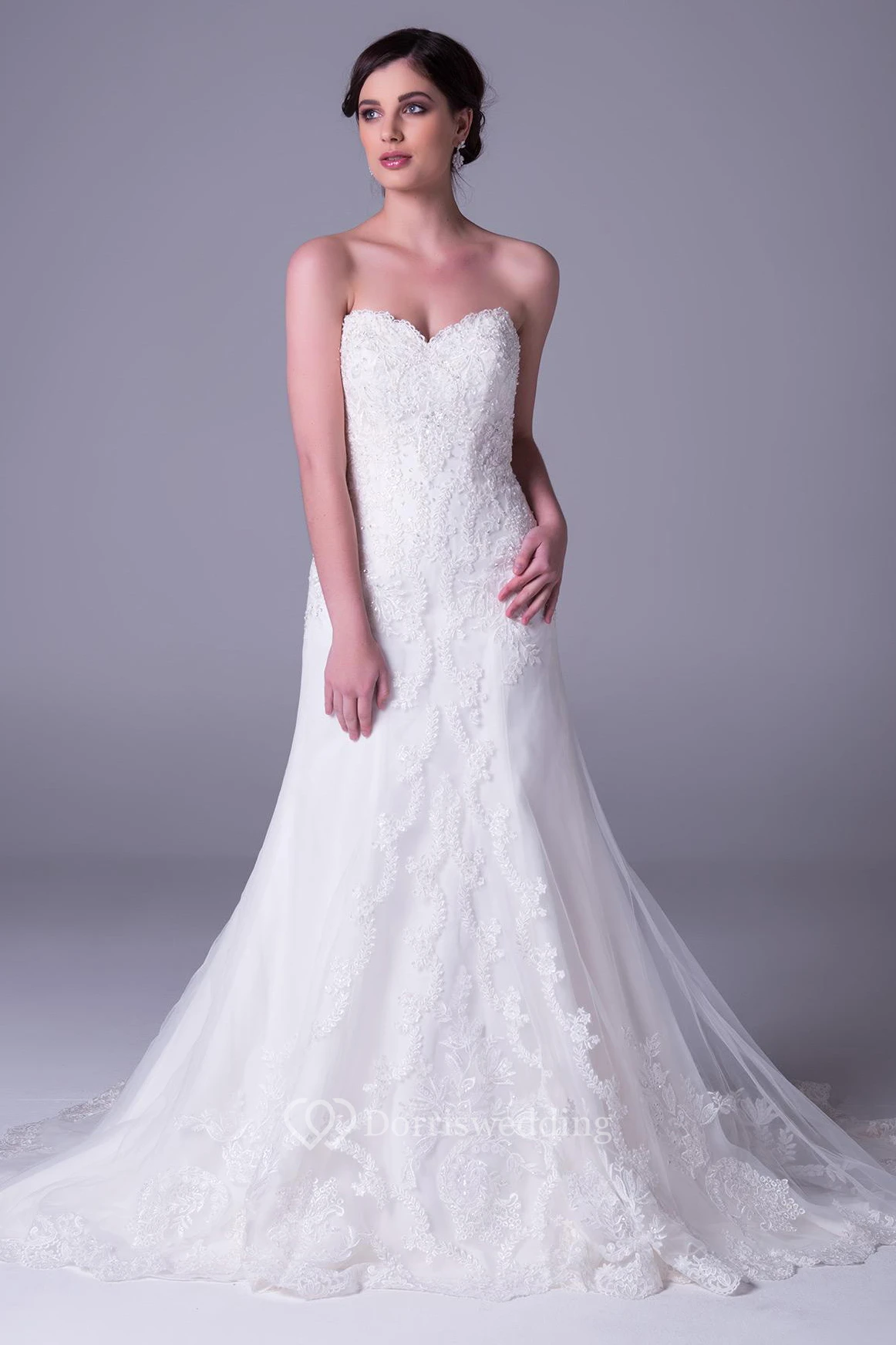 A-Line Sweetheart Floor-Length Lace Wedding Dress With Appliques And V Back