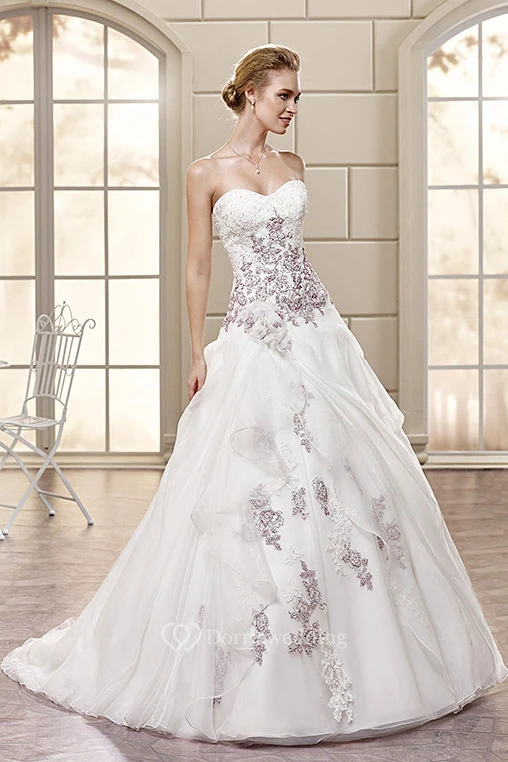 A-Line Sweetheart Floor-Length Organza Wedding Dress With Appliques And Draping