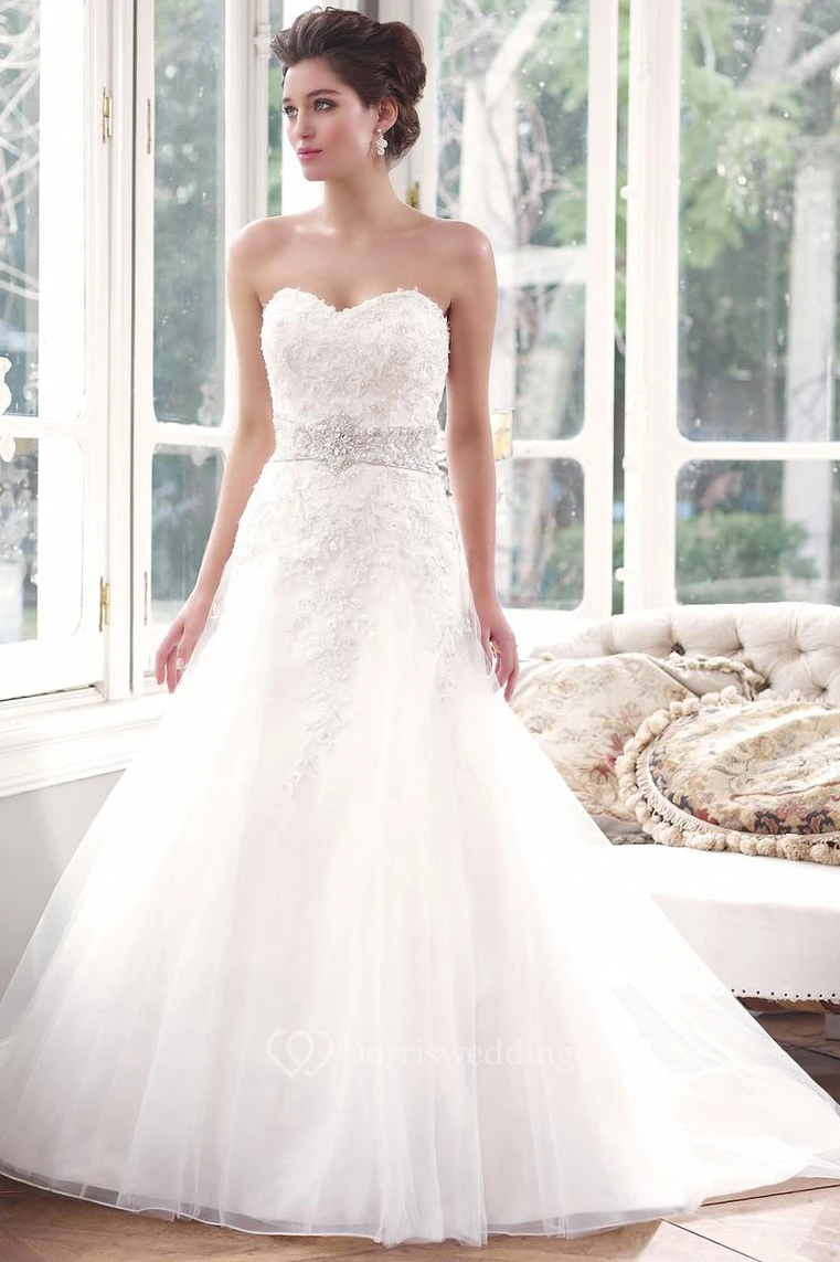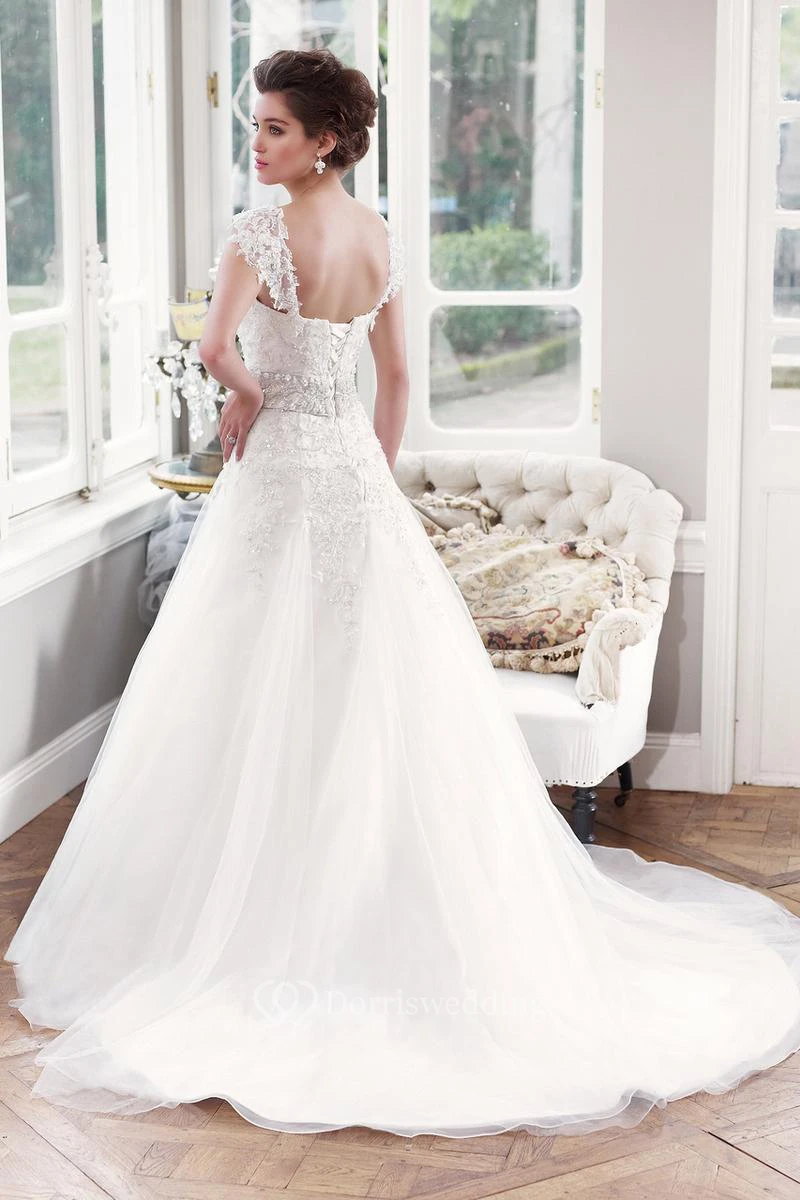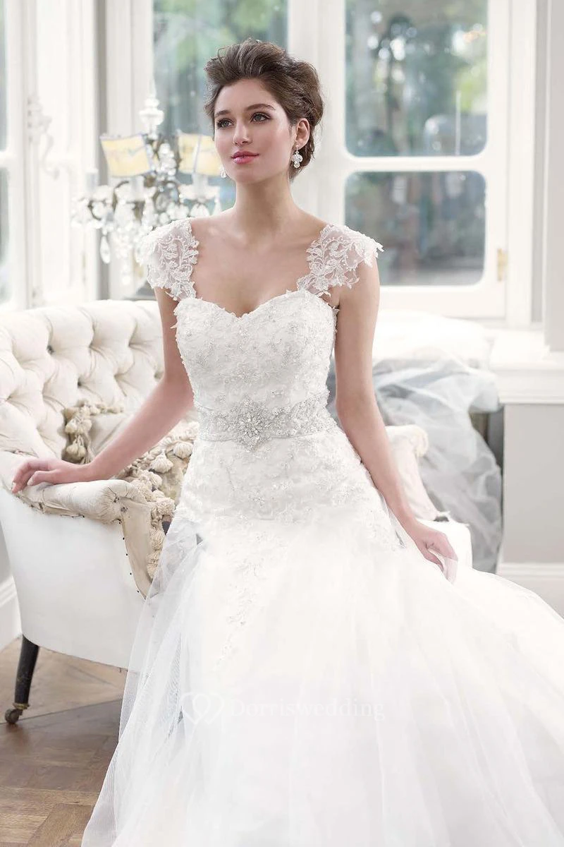 A-Line Sweetheart Jeweled Maxi Tulle&Lace Wedding Dress With Appliques And Cape