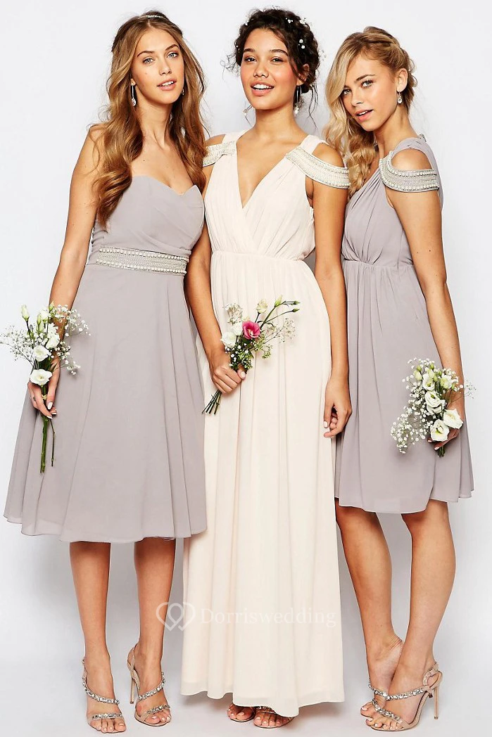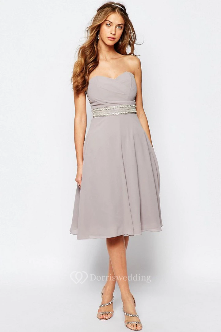 A-Line Sweetheart Jeweled Sleeveless Knee-Length Chiffon Bridesmaid Dress
