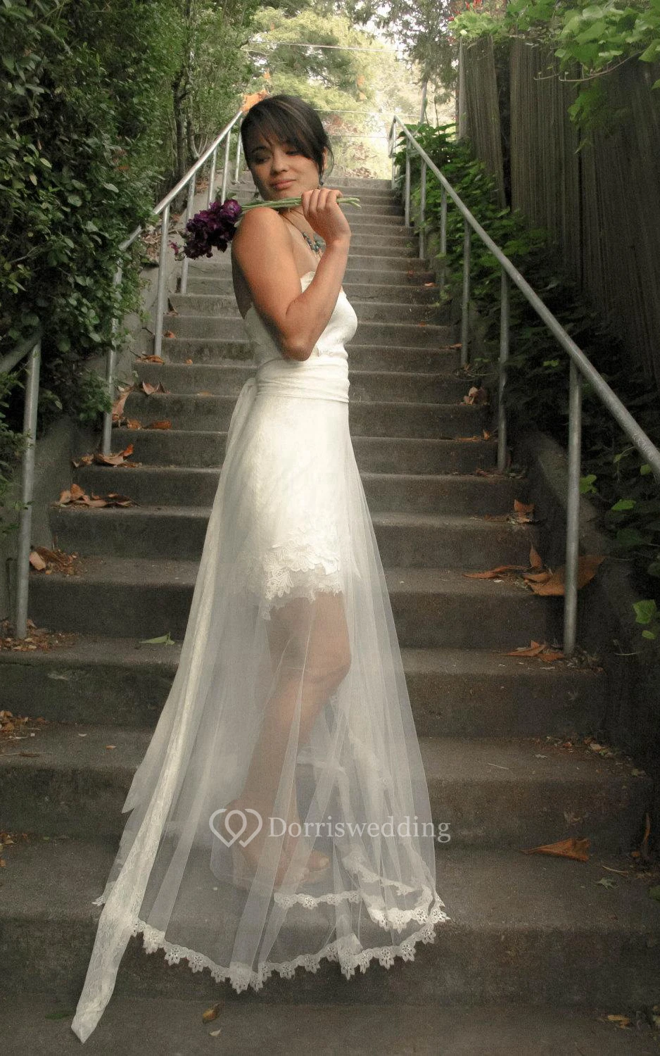 A-Line Sweetheart Lace Dress With See-Through Tulle Skirt