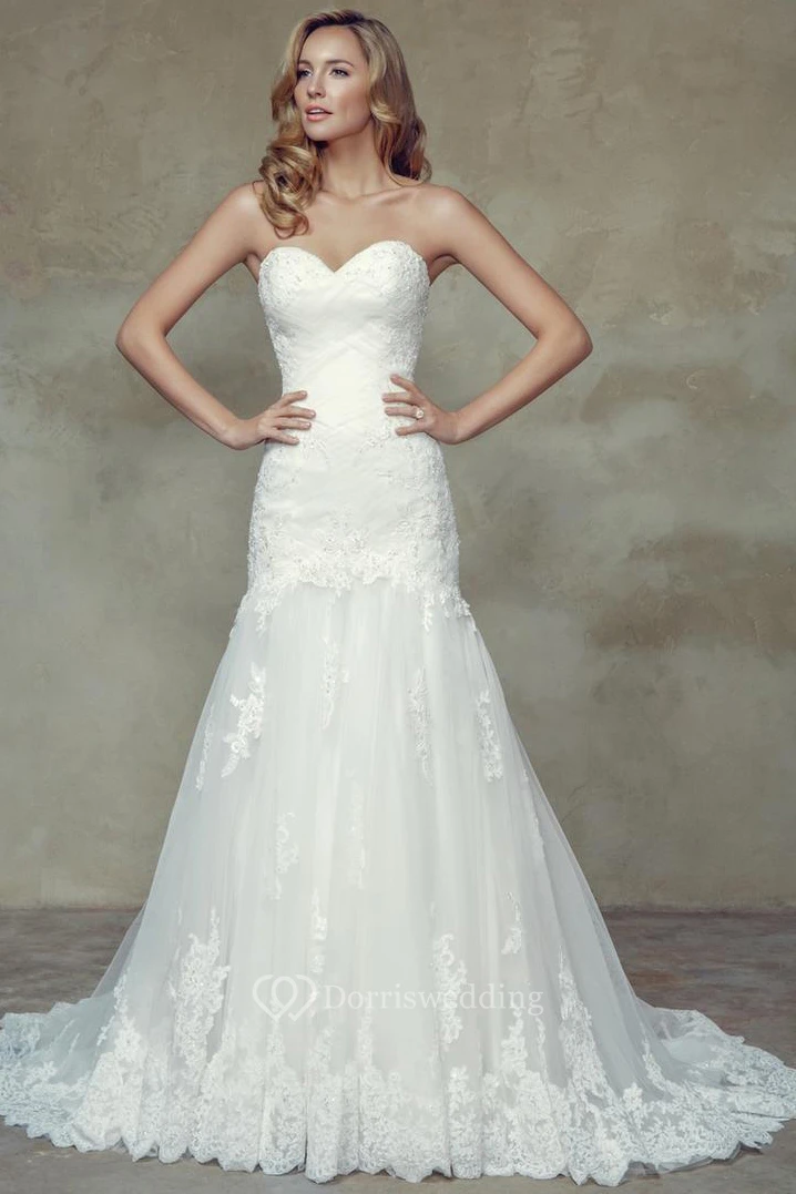 A-Line Sweetheart Lace Wedding Dress With Lace Up