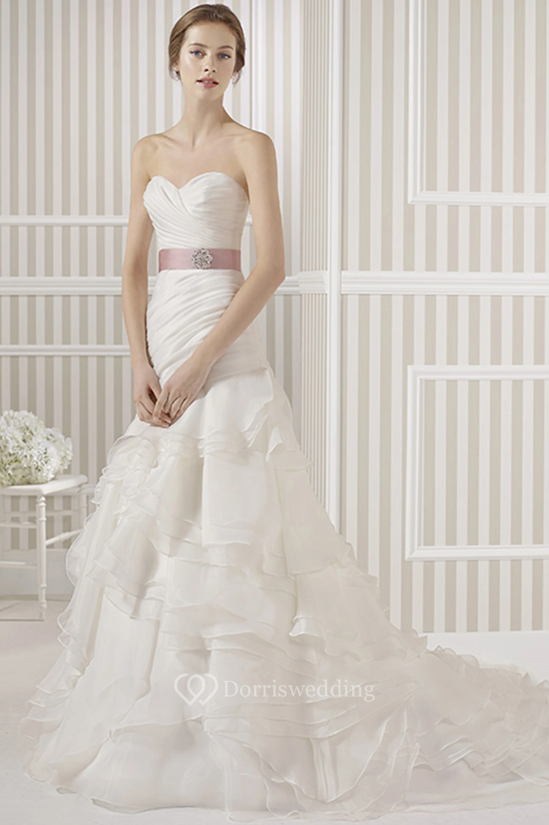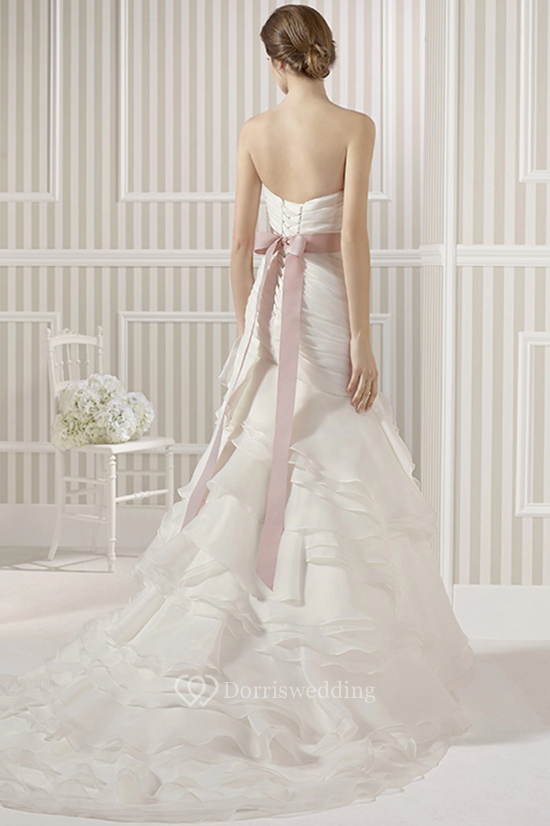 A-Line Sweetheart Long Organza Wedding Dress With Criss Cross And Tiers