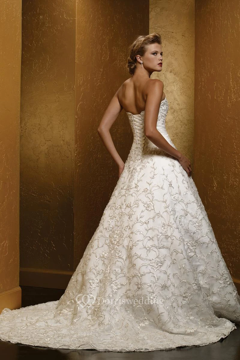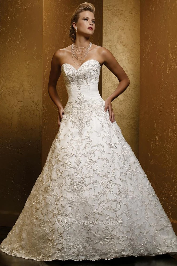 A-Line Sweetheart Long Satin Wedding Dress With Embroidery And Corset Back