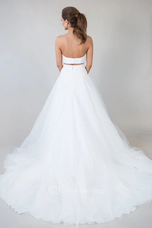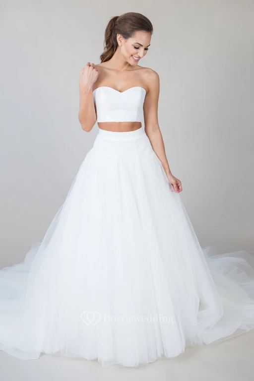 A-Line Sweetheart Long Tulle Wedding Dress With V Back