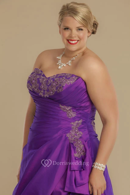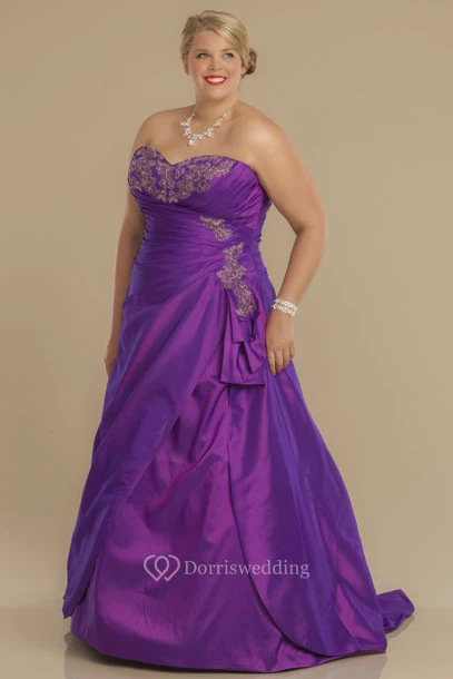 A-Line Sweetheart Maxi Appliqued Sleeveless Satin Plus Size Wedding Dress With Pick Up