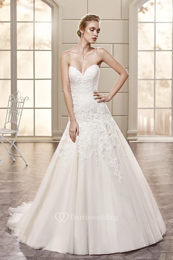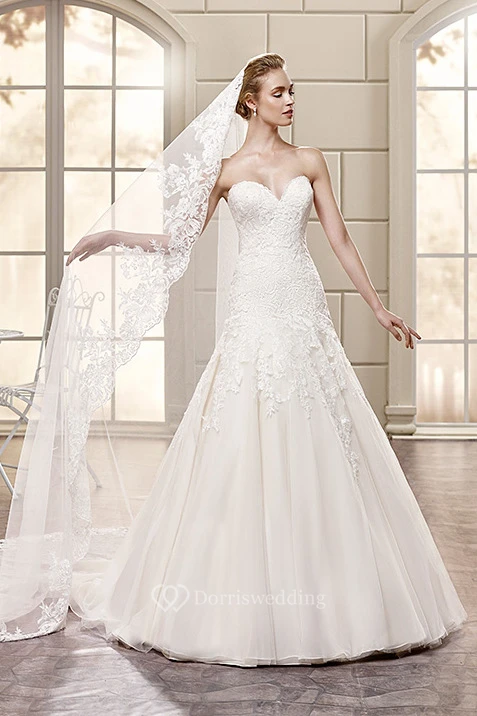 A-Line Sweetheart Maxi Tulle Wedding Dress With Appliques